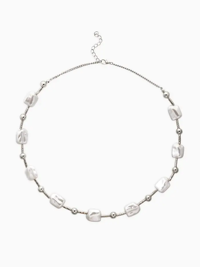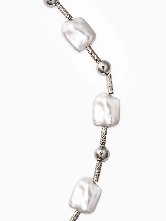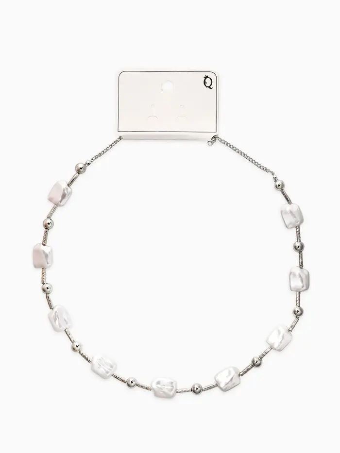Бусы "Жемчуг" майорика прямоугольник, цвет белый в серебре