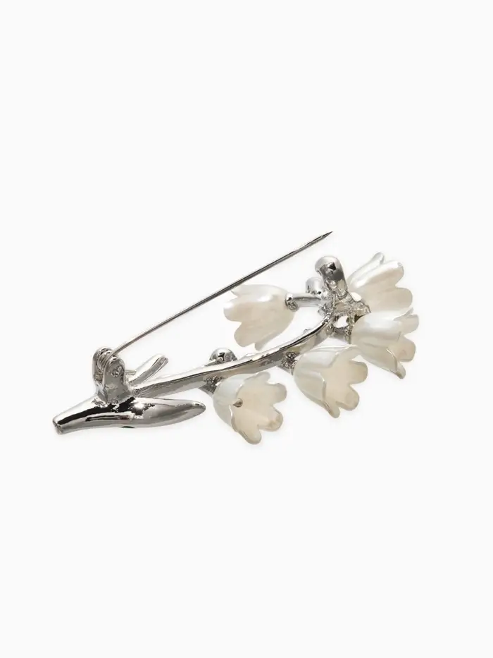 Брошь "Цветы Ландышей", цвет бело-зелёный в серебре