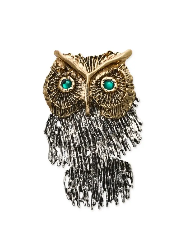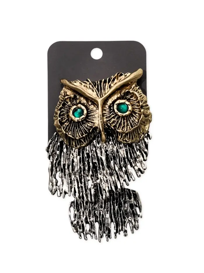 Брошь "Сова" крупная, подвижная, цветная