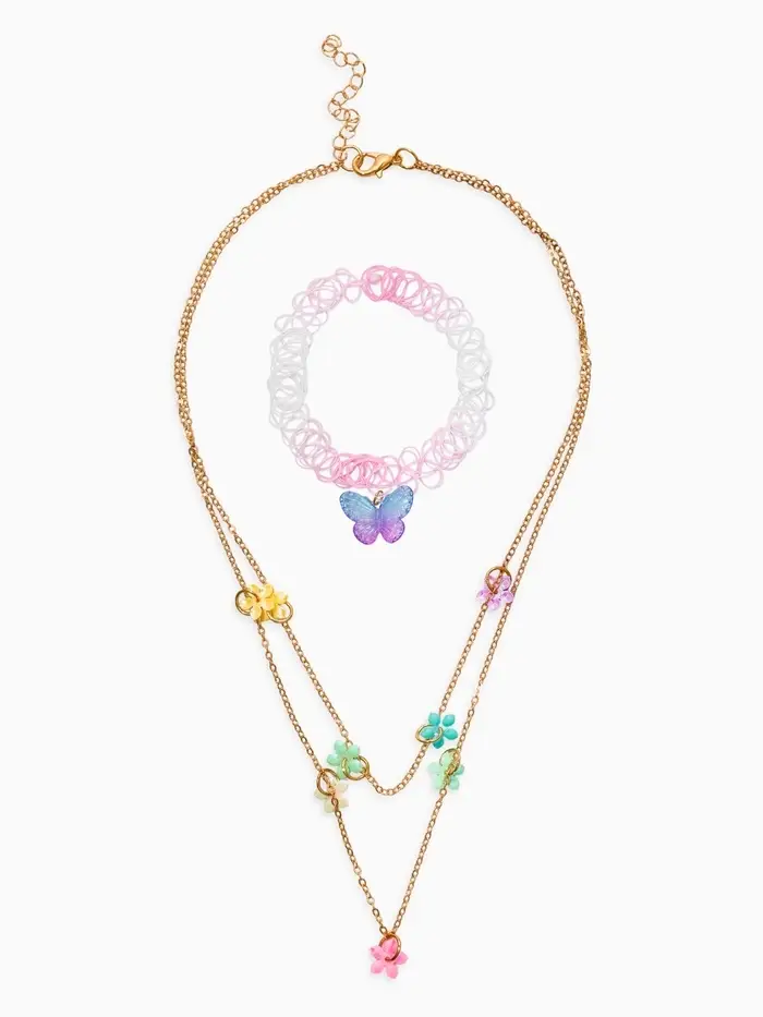 Бусы детские "Выбражулька" бабочки, чокер, цветные в золоте