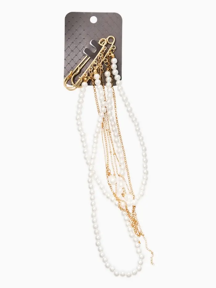 Булавки "Аксельбант", жемчуг, цвет белый в золоте