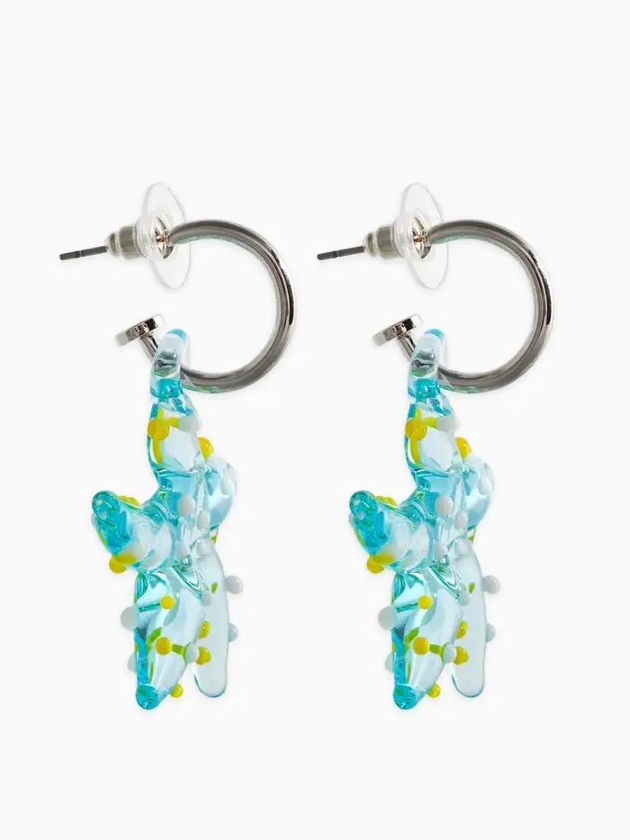 Серьги из стекла "Море", звезда, цвет голубой в серебре