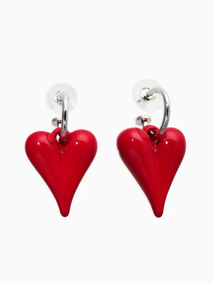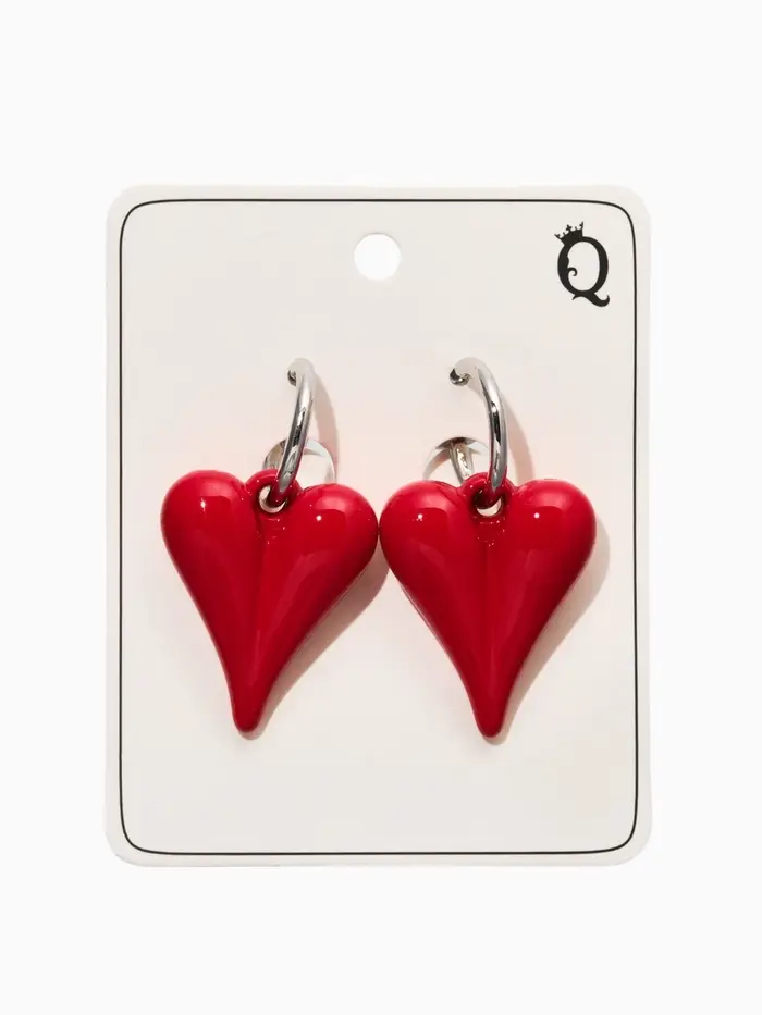 Серьги со съмными элементами "Сердца" вытянутые, цвет красный в серебре