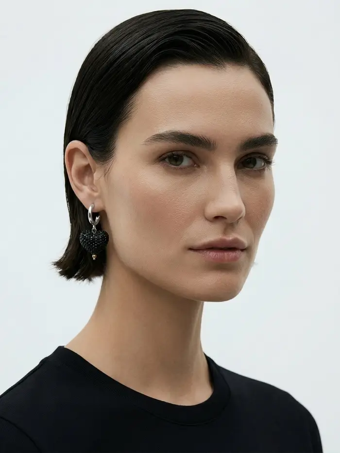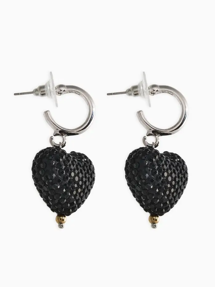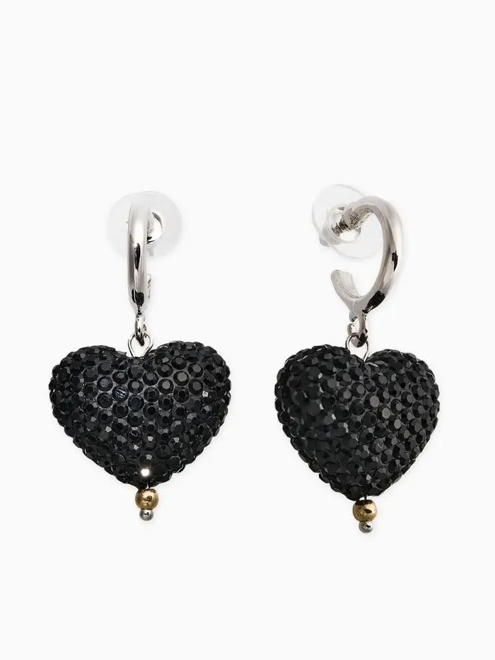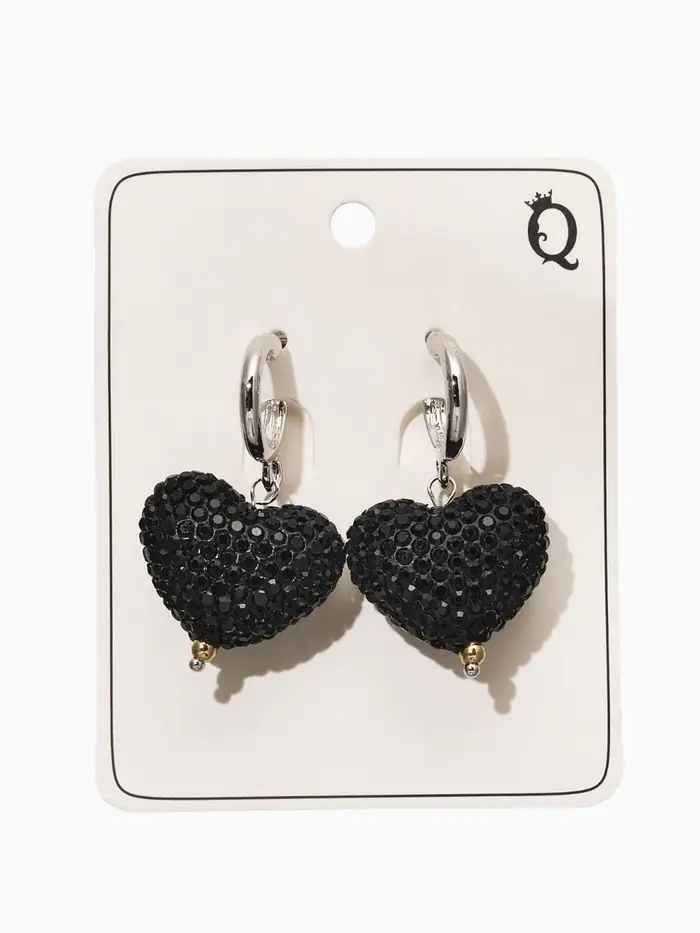 Серьги "Сияние вечера" сердце, цвет чёрный в серебре