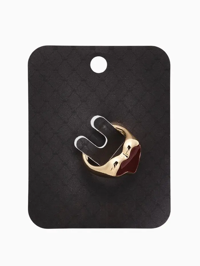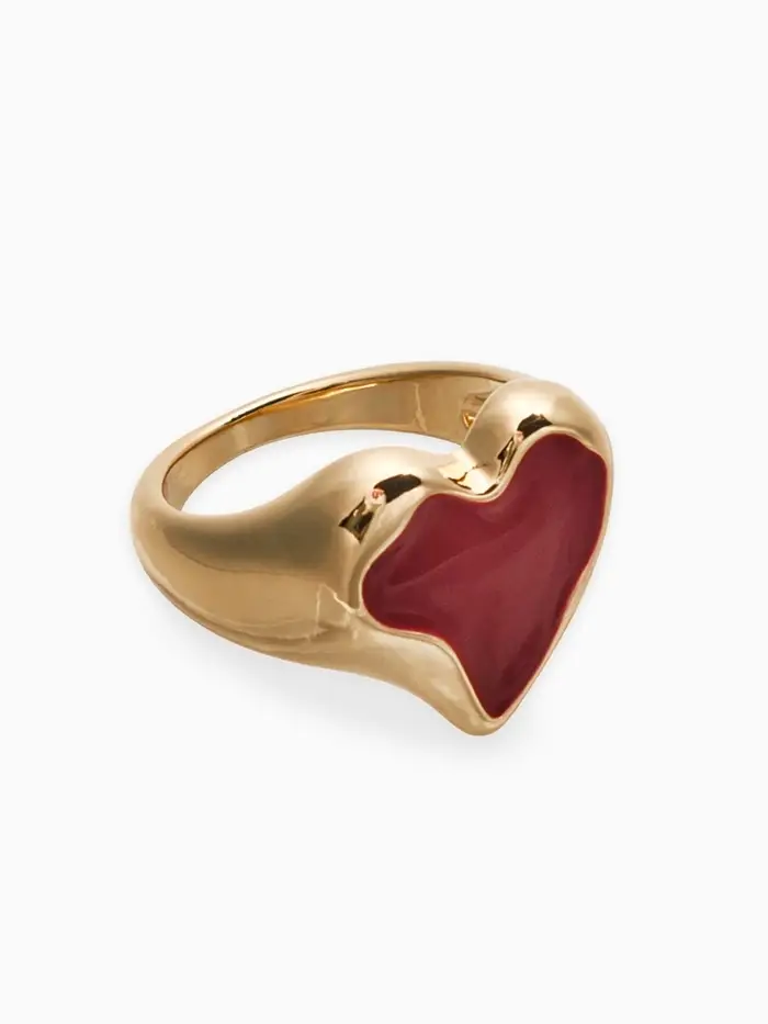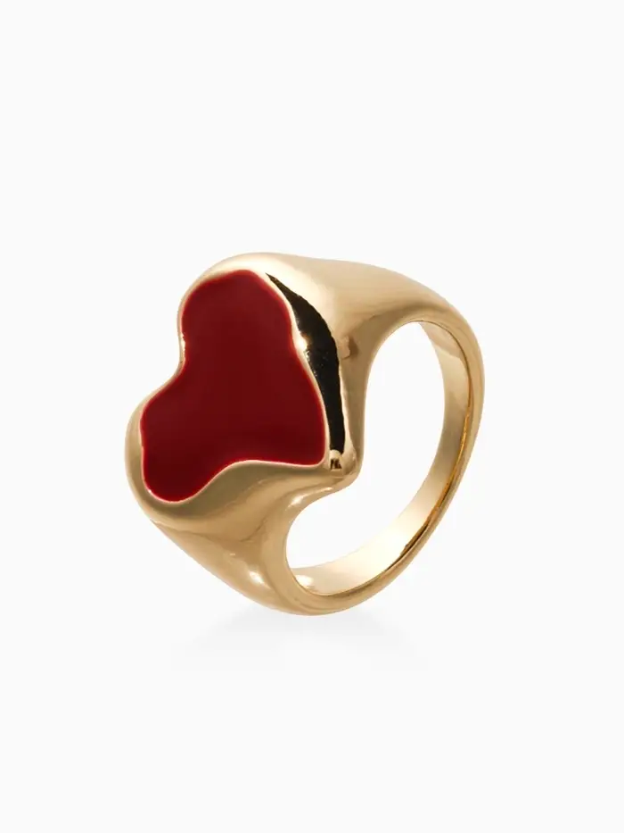 Кольцо "Сердце" корейский стиль, размер 17, цвет бордовый в золоте