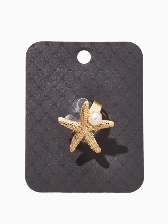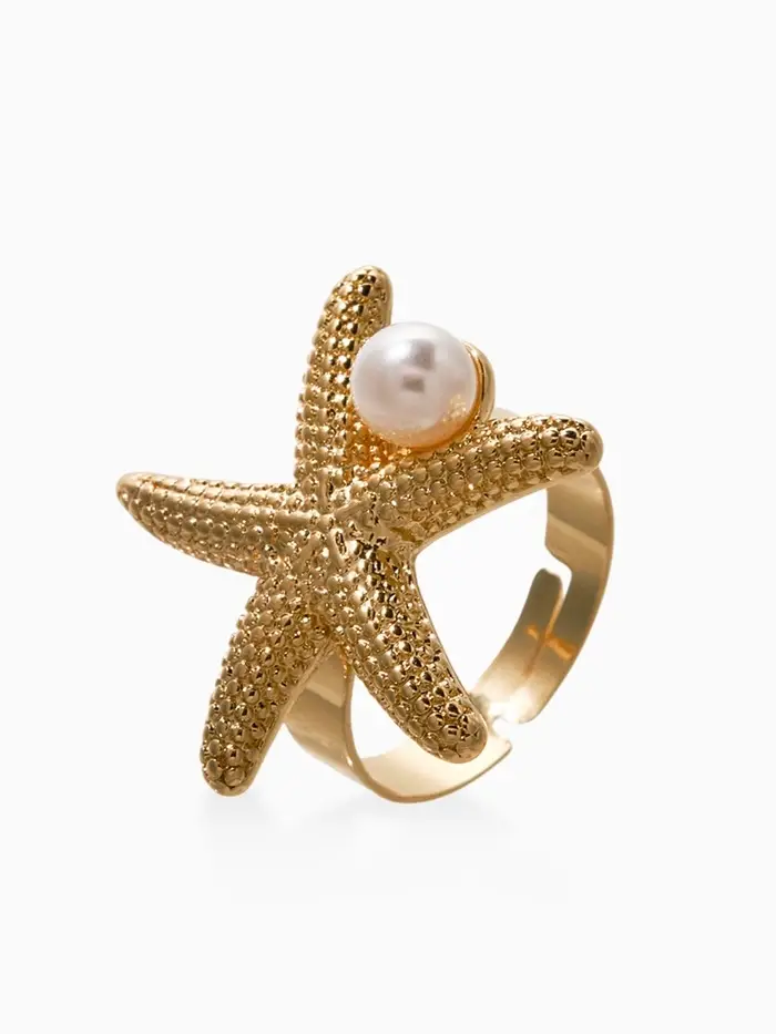 Кольцо "Морская звезда" с бусиной, безразмерное, цвет белый в золоте