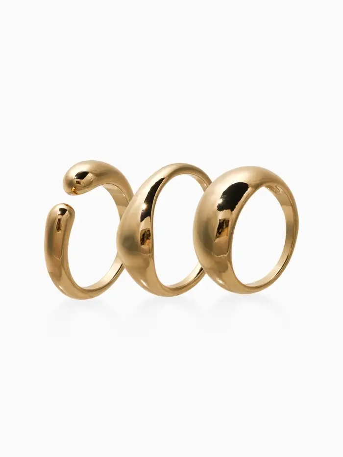 Набор колец 3 шт "Новый стиль" минимализ линий, размер МИКС, цвет золото