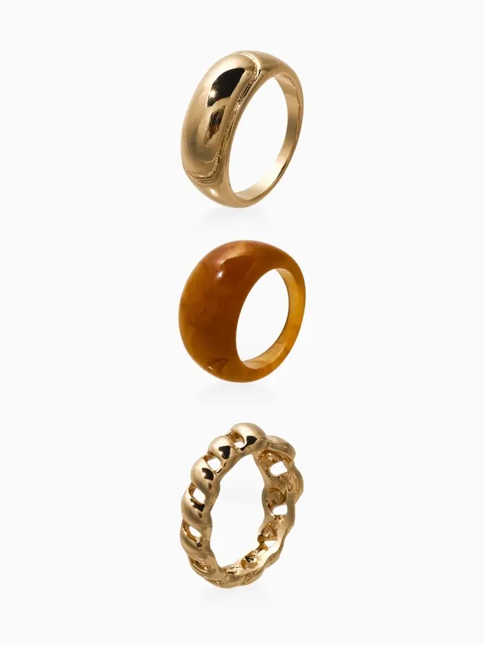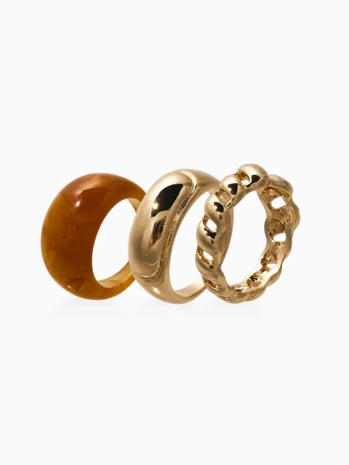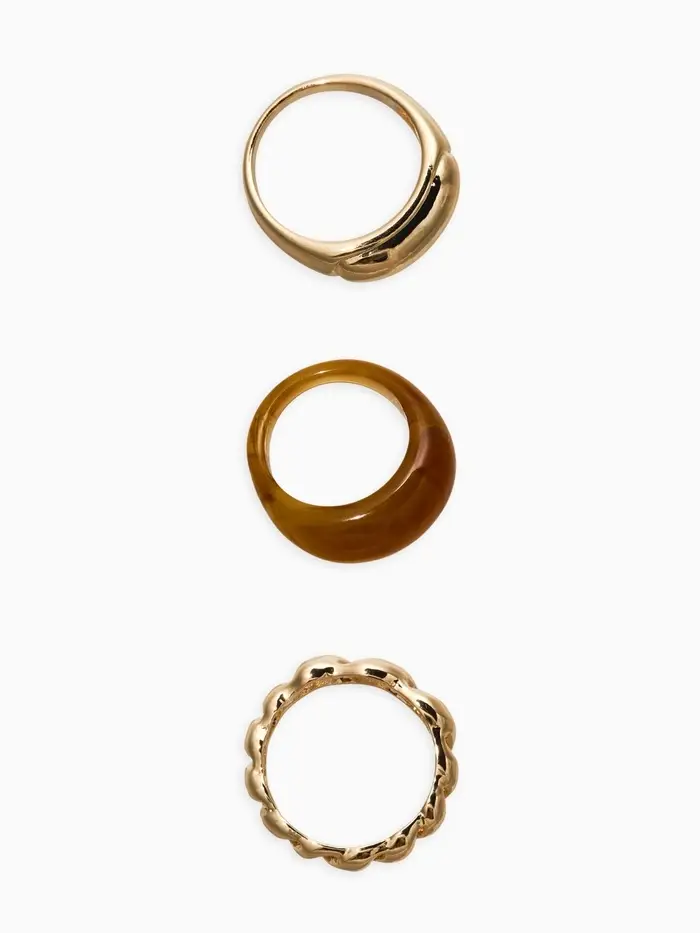 Набор колец 3 шт "Новый стиль" натурель, размер МИКС, цвет коричневый в золоте