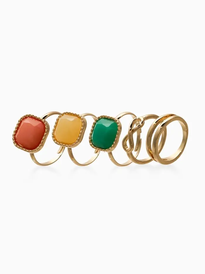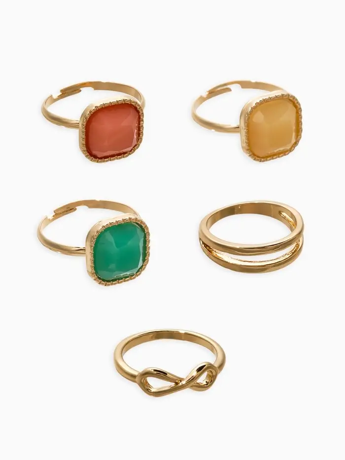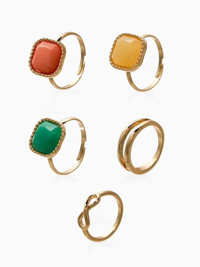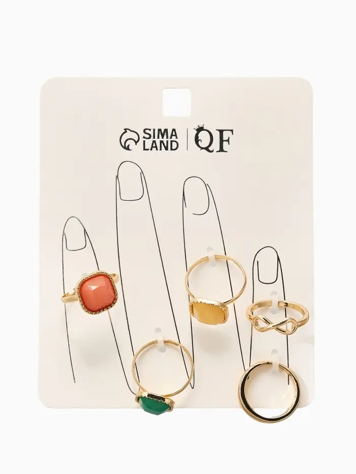 Набор колец 5 шт "Новый стиль" камни, размер МИКС, цветной в золоте