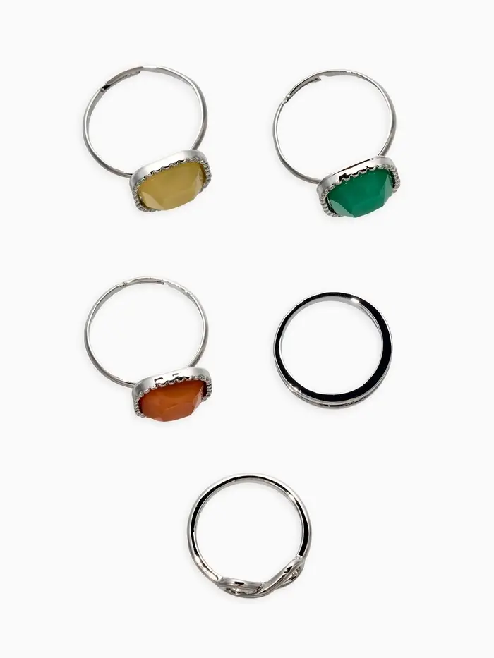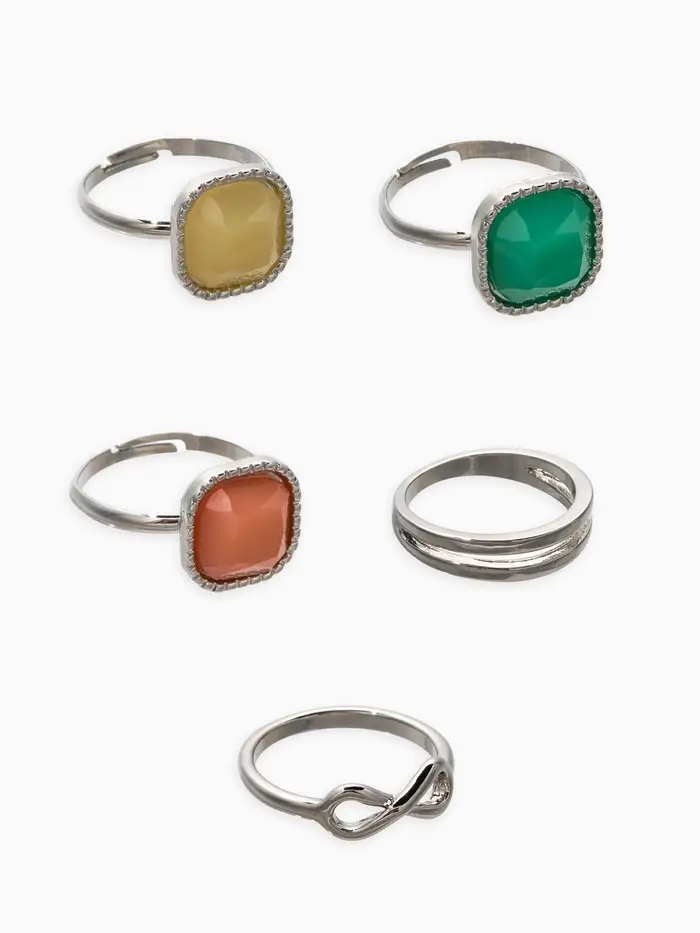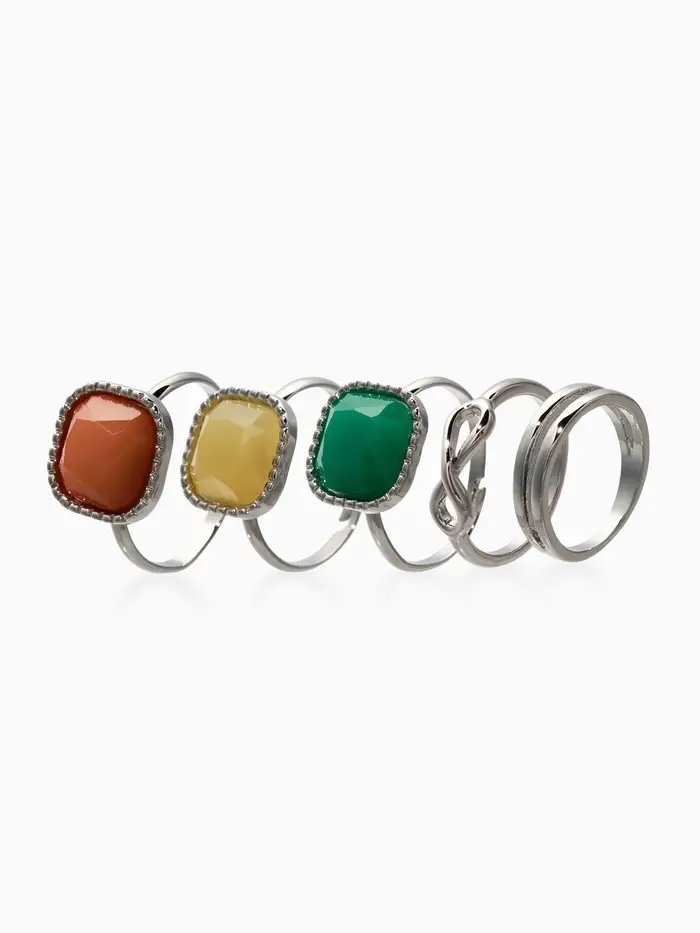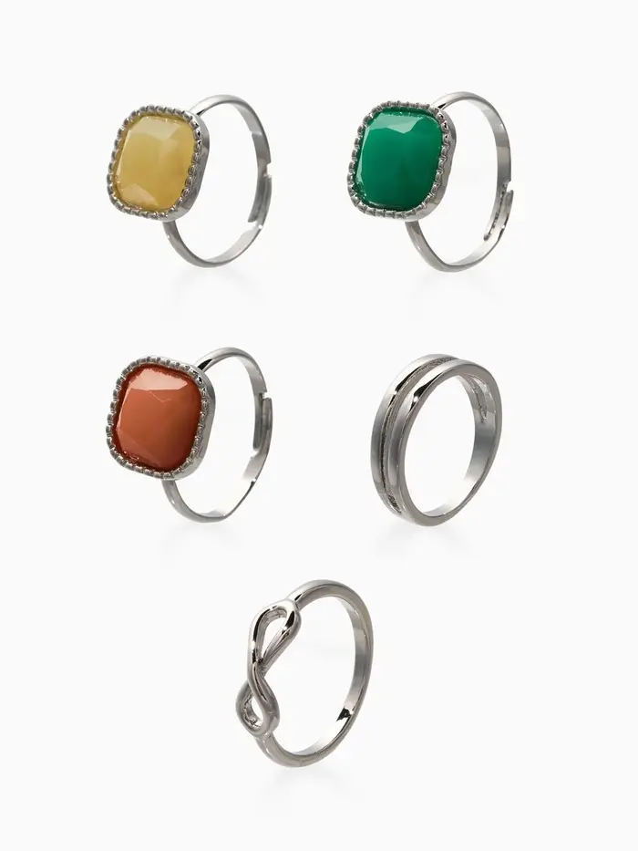 Набор колец 5 шт "Новый стиль" камни, размер МИКС, цветной в серебре