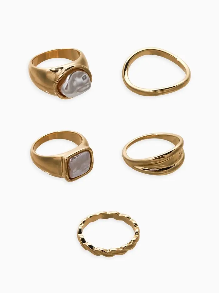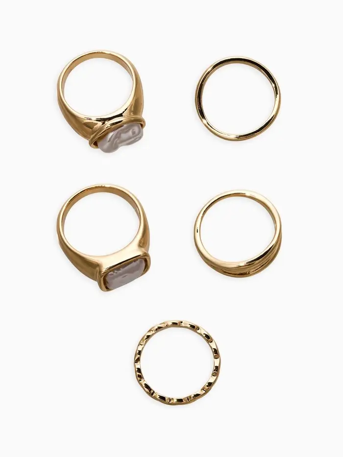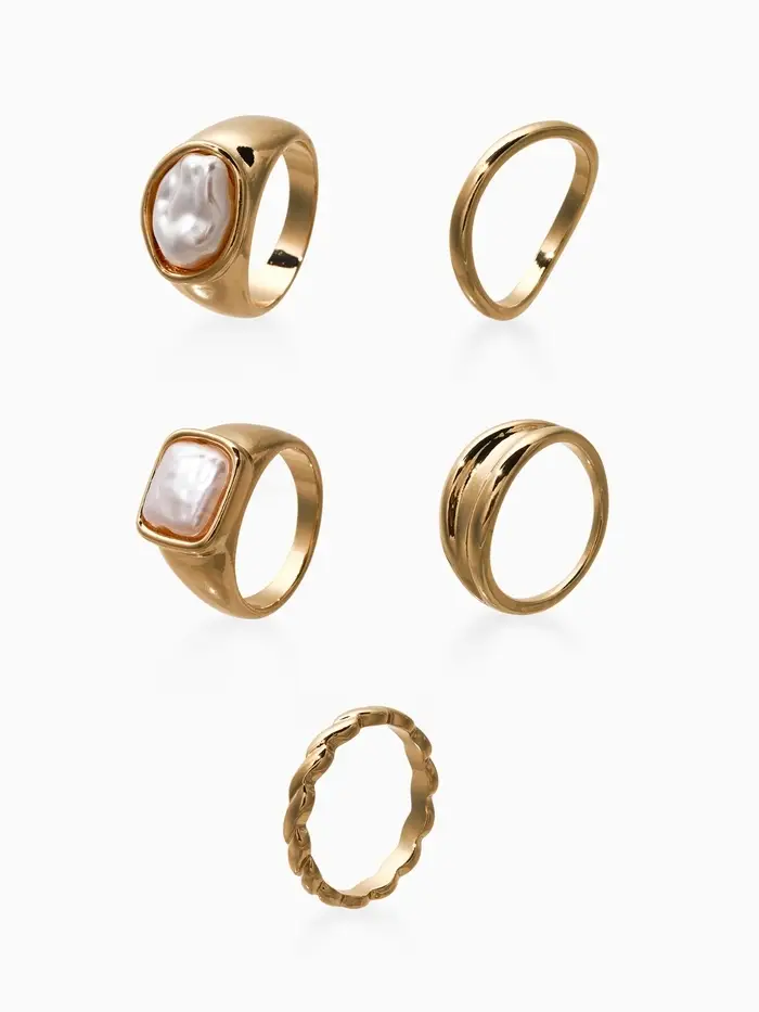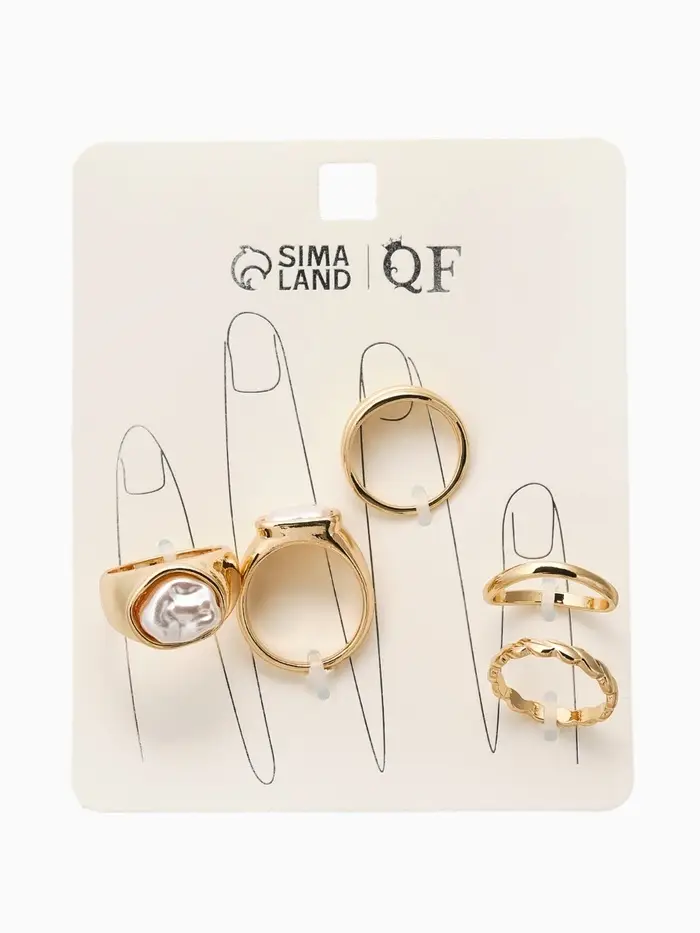 Набор колец 5 шт "Новый стиль" жемчуг, размер МИКС, цвет белый в золоте