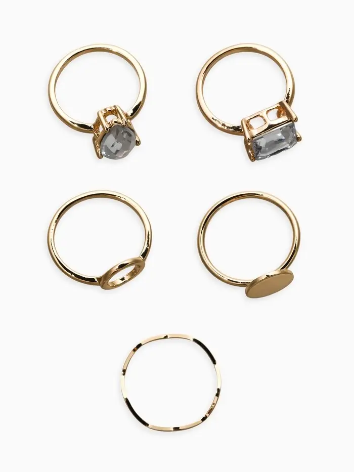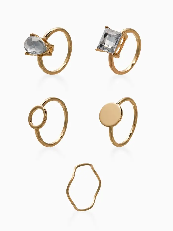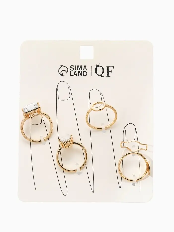Набор колец 5 шт "Новый стиль" кристалл, размер МИКС, цвет белый в золоте