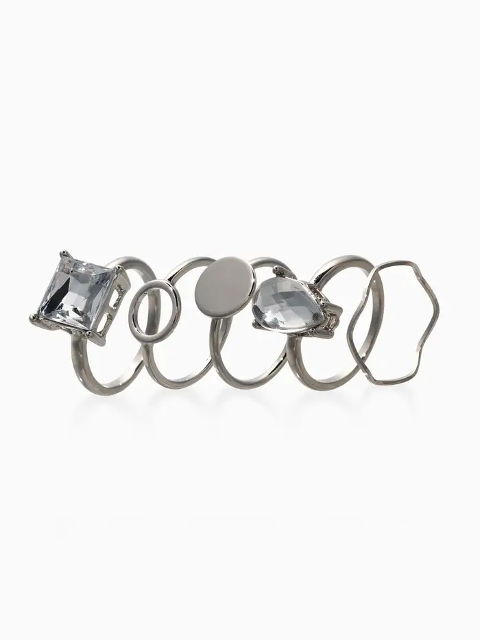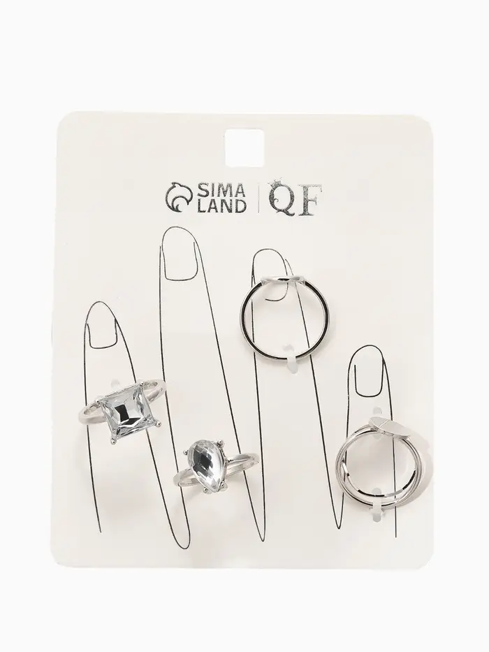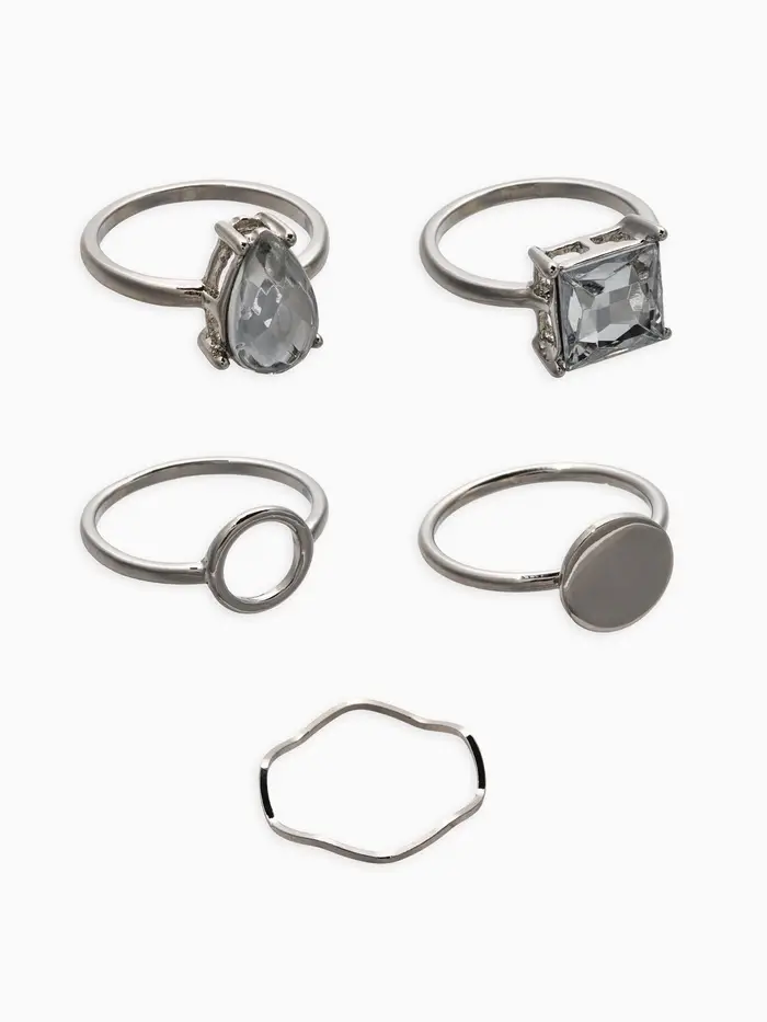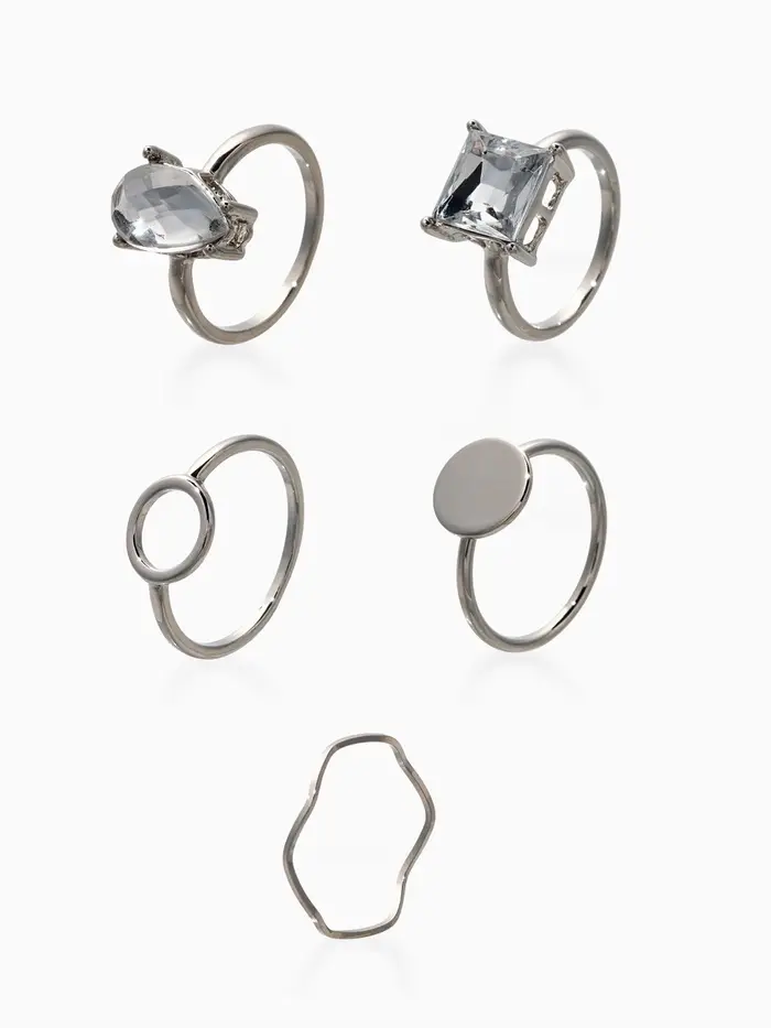 Набор колец 5 шт "Новый стиль" кристалл, размер МИКС, цвет белый в серебре