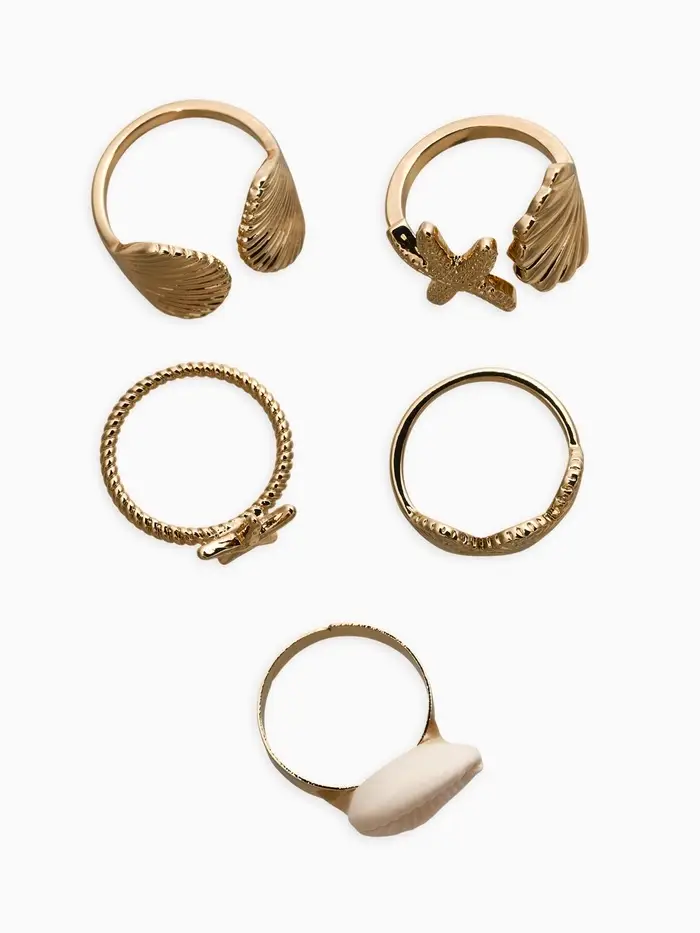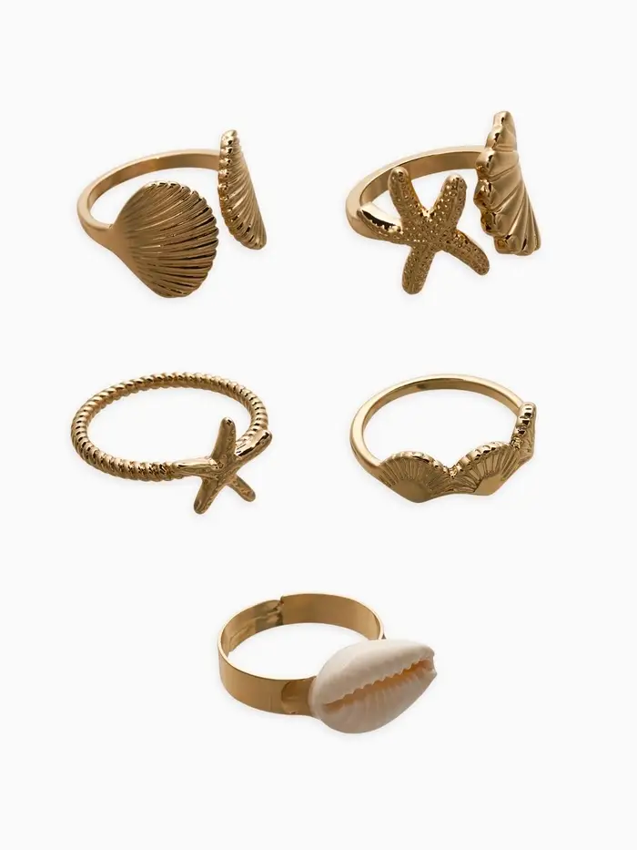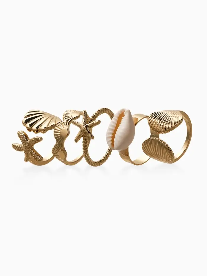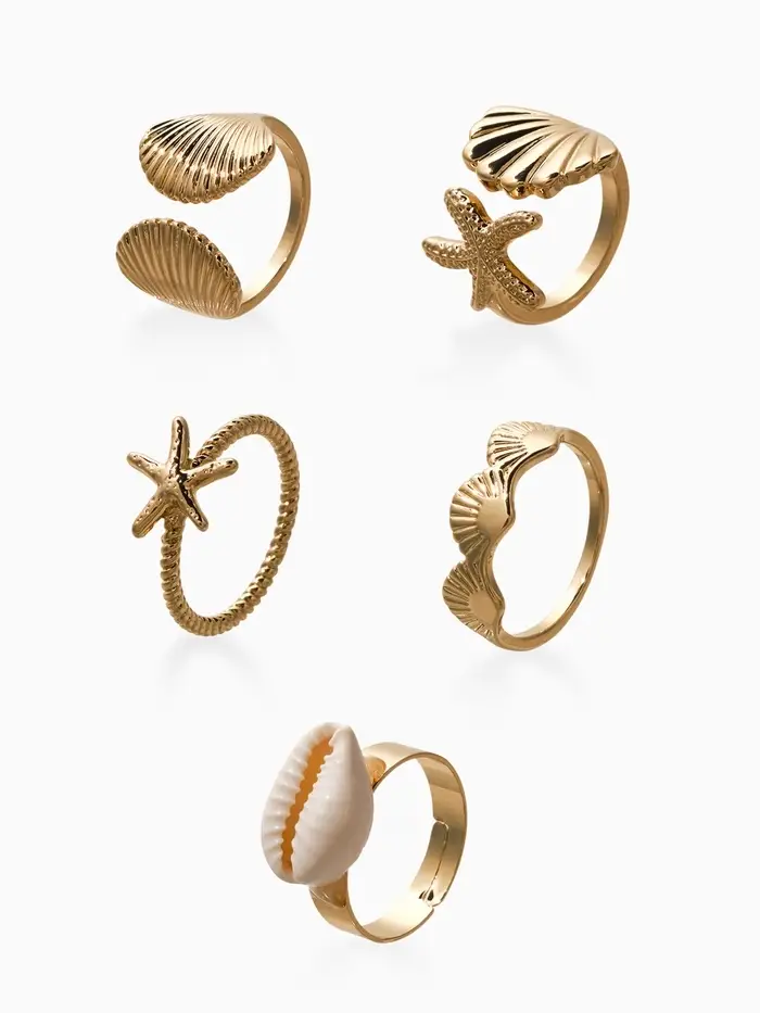 Набор колец 5 шт "Новый стиль" море, размер МИКС, цвет белый в золоте