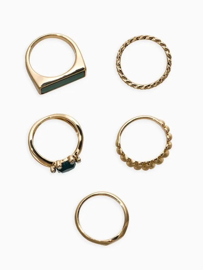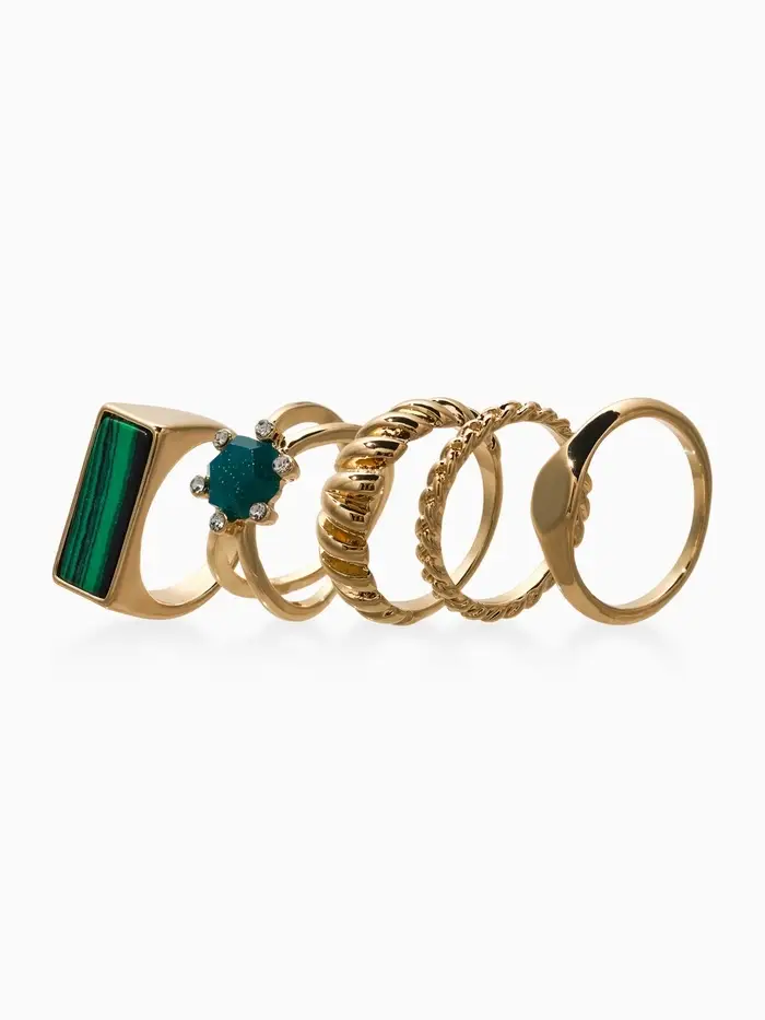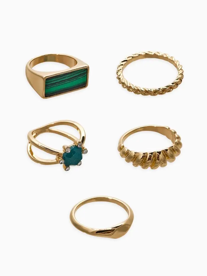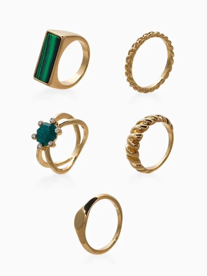 Набор колец 5 шт "Новый стиль" натурель, размер МИКС, цвет изумрудный в золоте