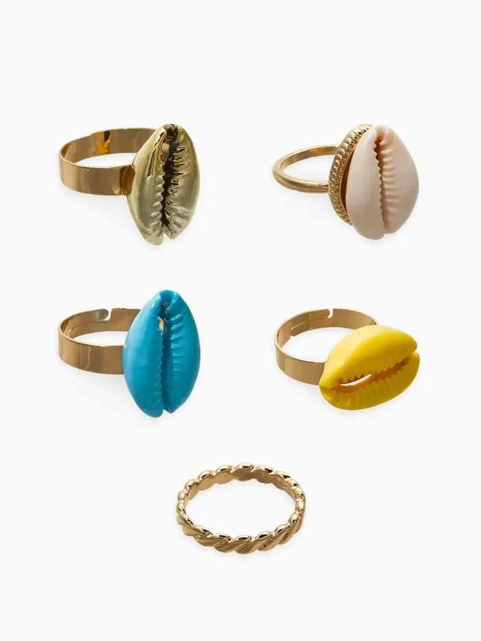 Набор колец 5 шт "Новый стиль" ракушки, размер МИКС, цветные в золоте