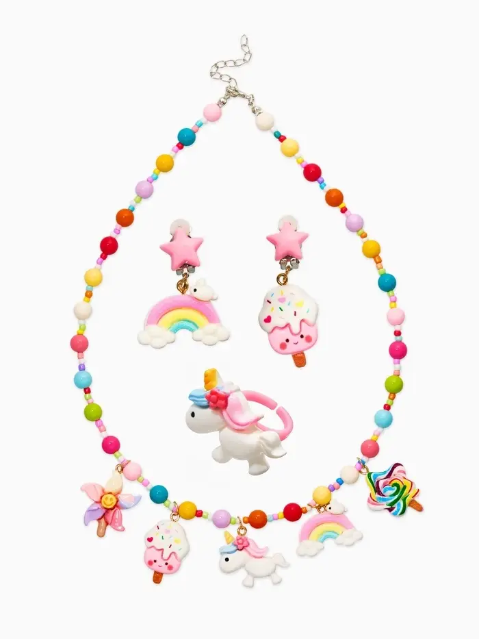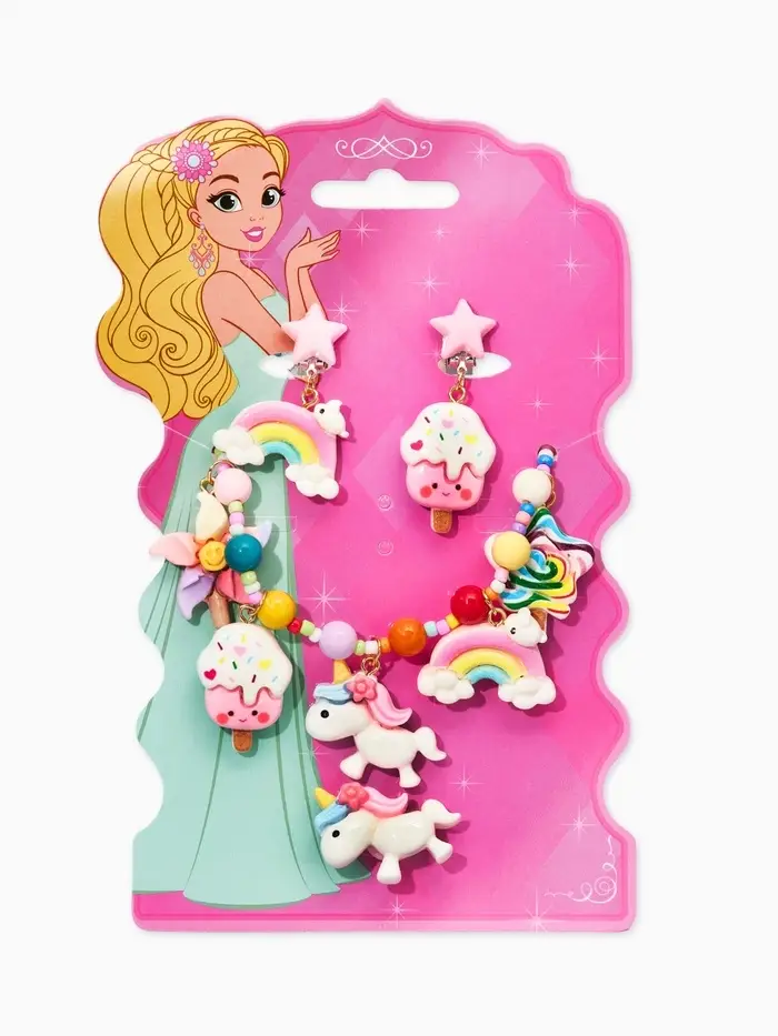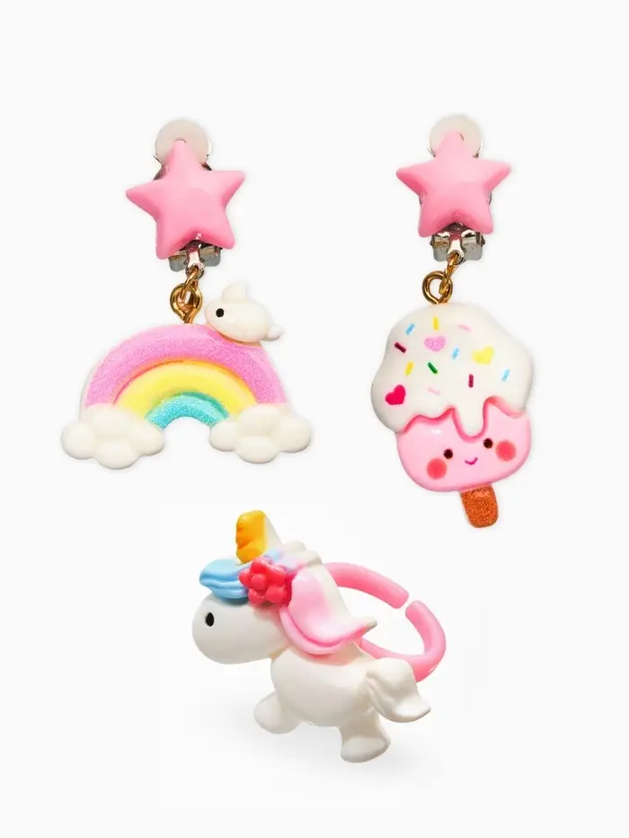 Набор детских украшений "Выбражулька" единорог, сладости, 3 предмета: клипсы, кольцо, бусы 1093720