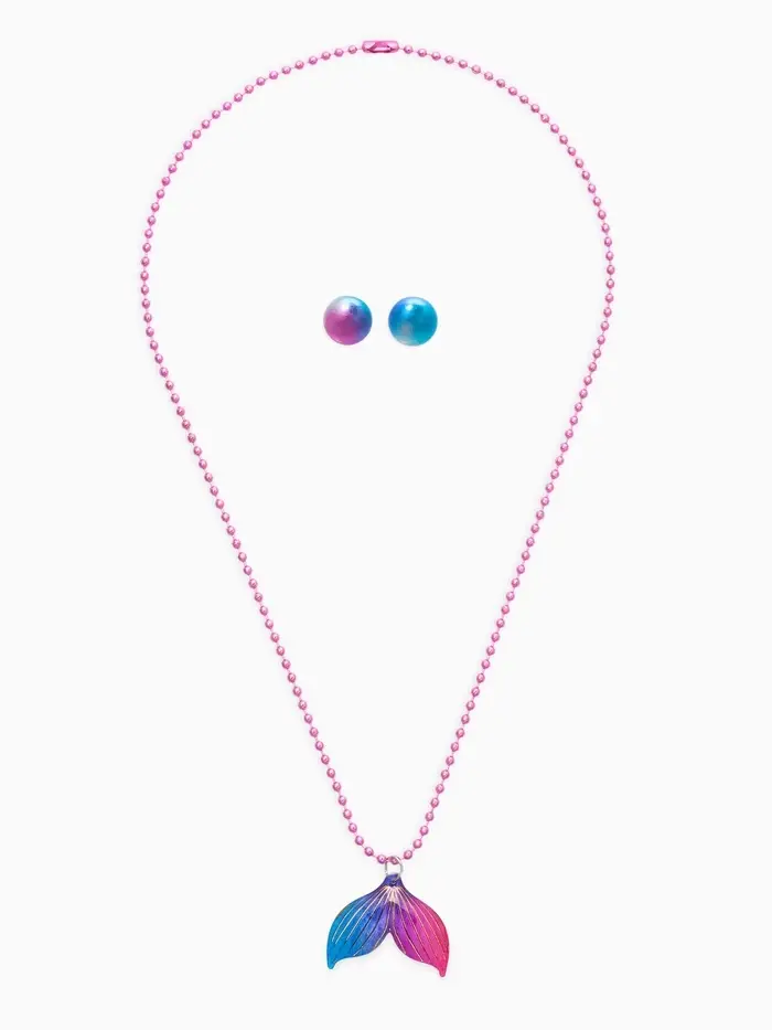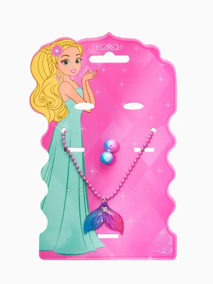 Набор детских украшений "Выбражулька" русалка, 2 предмета: кулон, пусеты, разноцветный