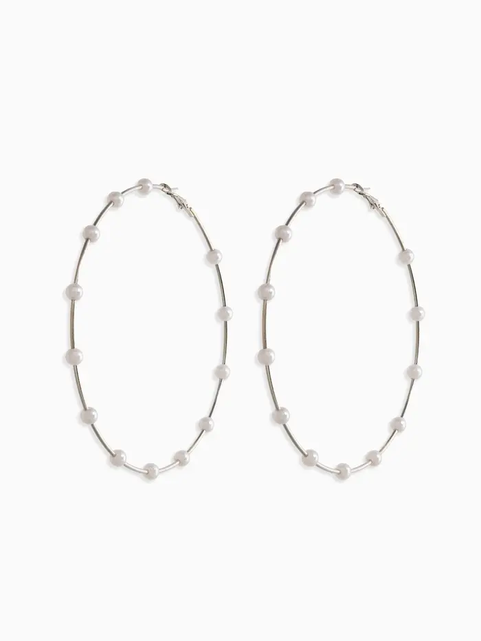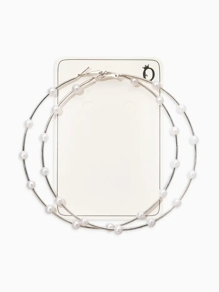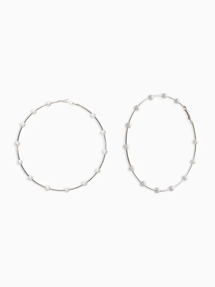 Серьги-кольца "Жемчуг" d=10см. №6, цвет белый в серебре