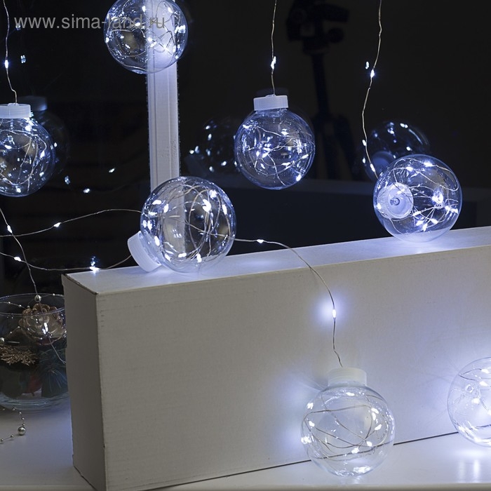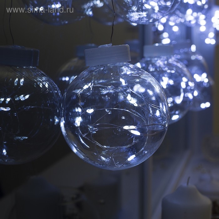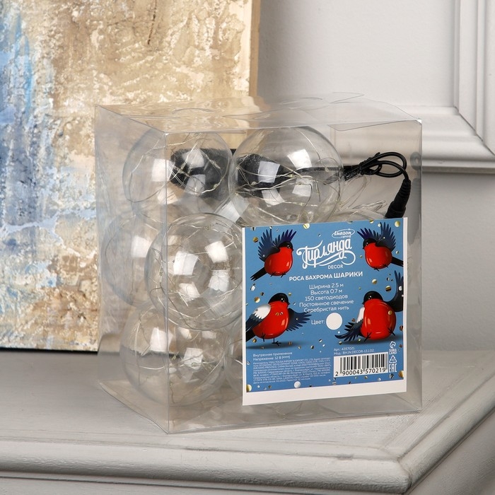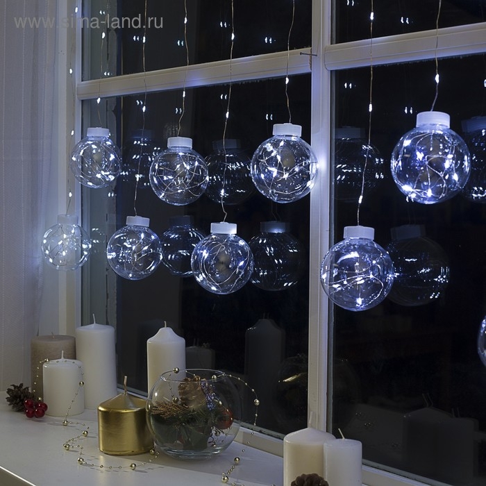 Гирлянда «Бахрома» 2.5 × 0.7 м роса с насадками «Шарики», IP20, серебристая нить, 150 LED, свечение белое, 12 В
