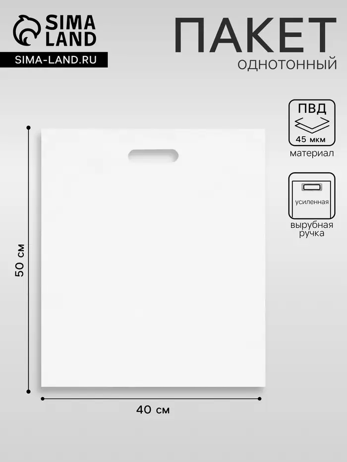 Пакет с вырубной усиленной ручкой, белый, 40 х 50 см, 45 мкм