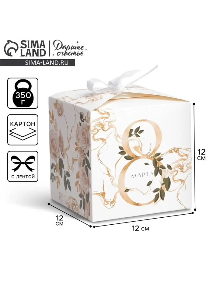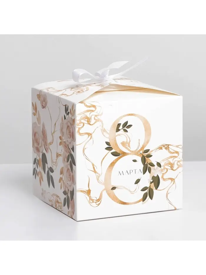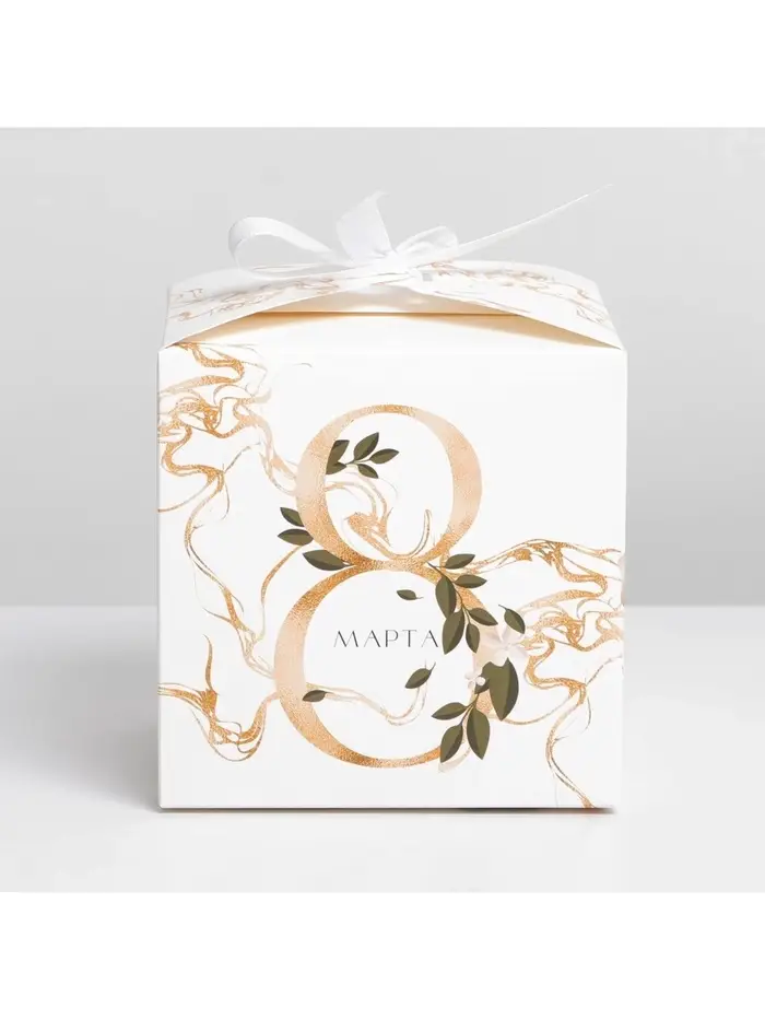 Коробка подарочная складная, упаковка, «8 марта, золотой», 12×12×12 см