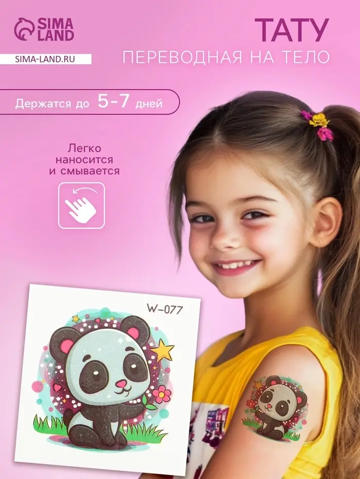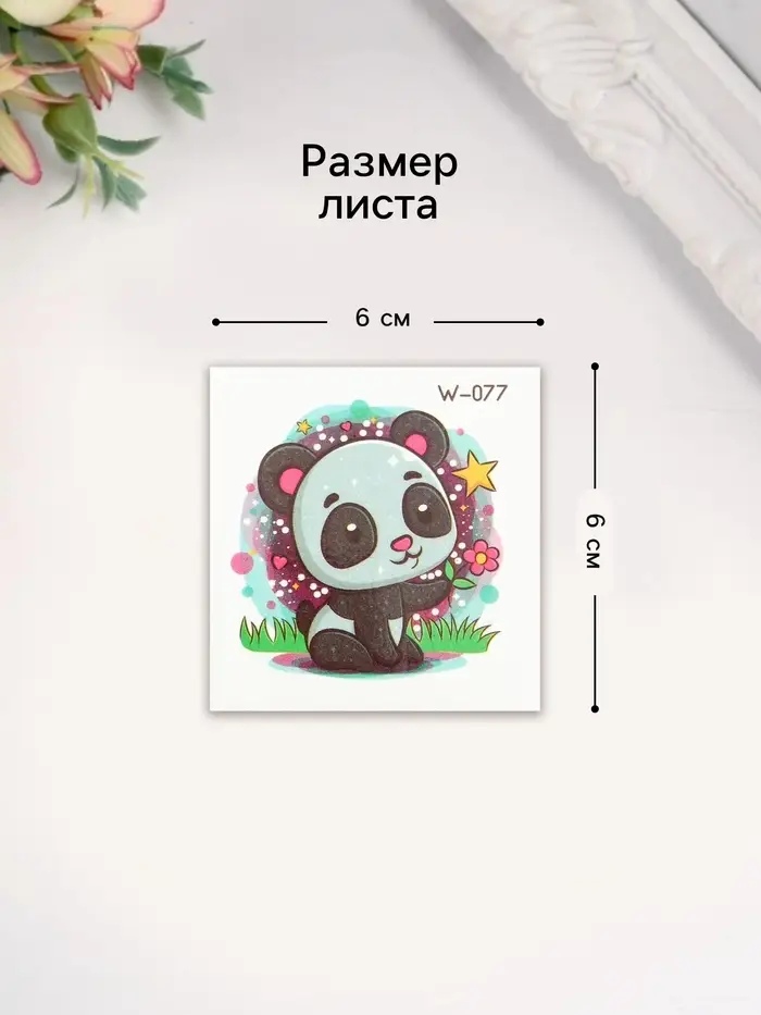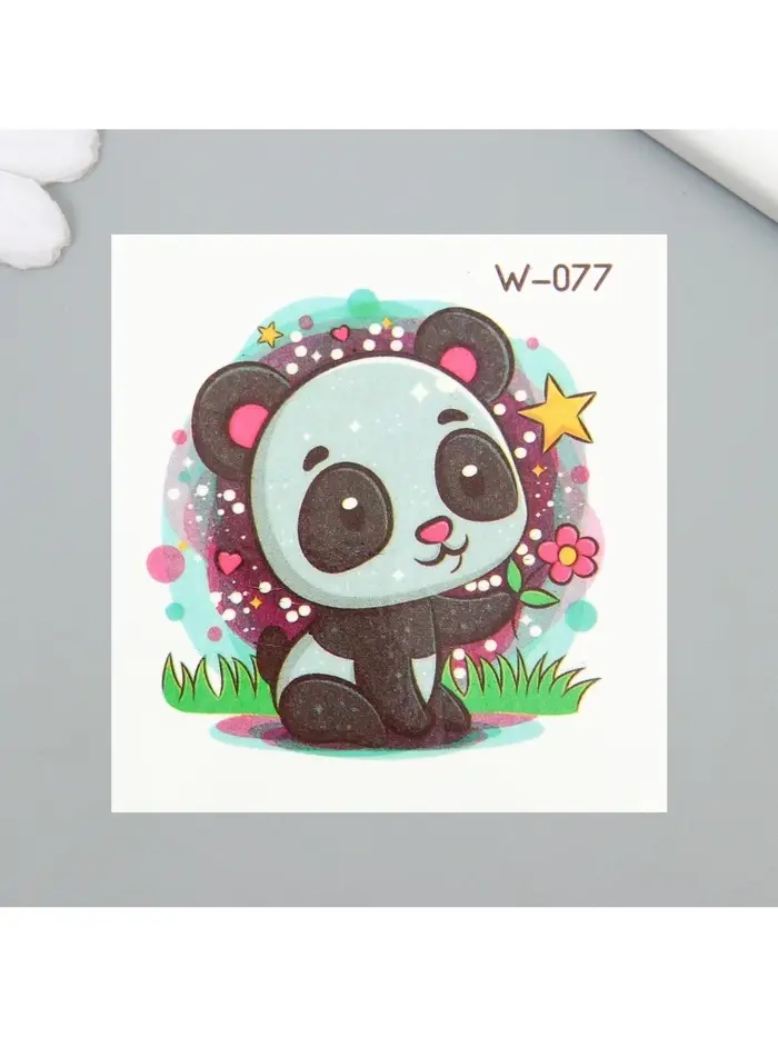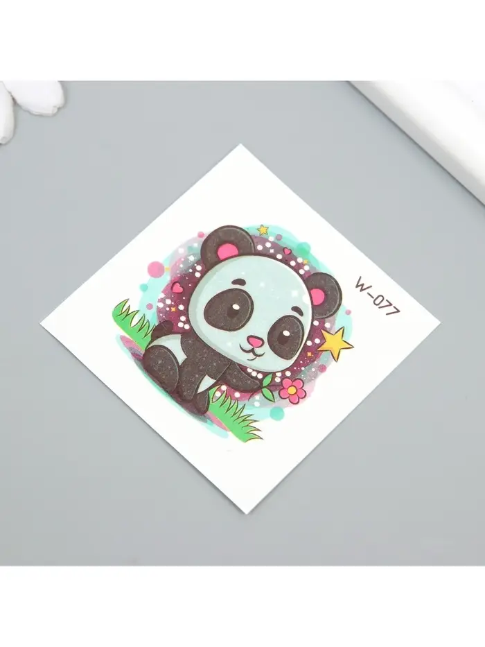 Переводная тату на тело цветная «Малыш панды с цветочком», 6×6 см