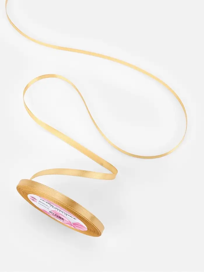 Лента атласная, 6 мм, 23±1 м, золотисто-бежевая №186