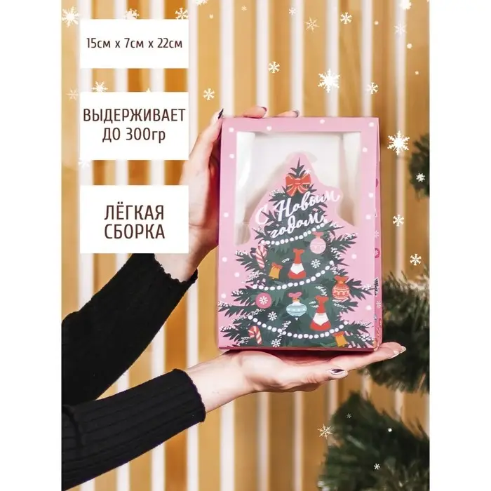 Коробка подарочная новогодняя складная «Розовые сладости», 15 х 7 х 22 см, Новый год