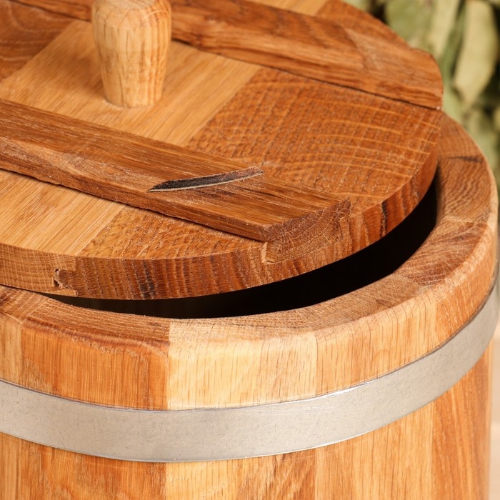 Кадка-бочка для засолки дубовая, 5 л, нержавеющий обруч, с крышкой, с гнетом