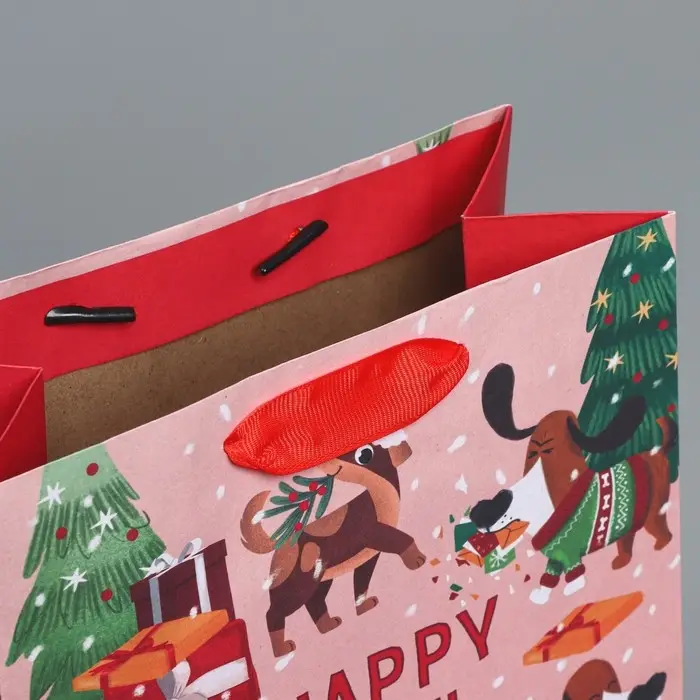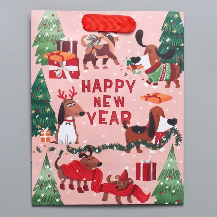 Пакет подарочный новогодний крафтовый вертикальный «Собачьи истории», MS 18 х 23 х 10 см
