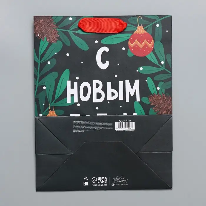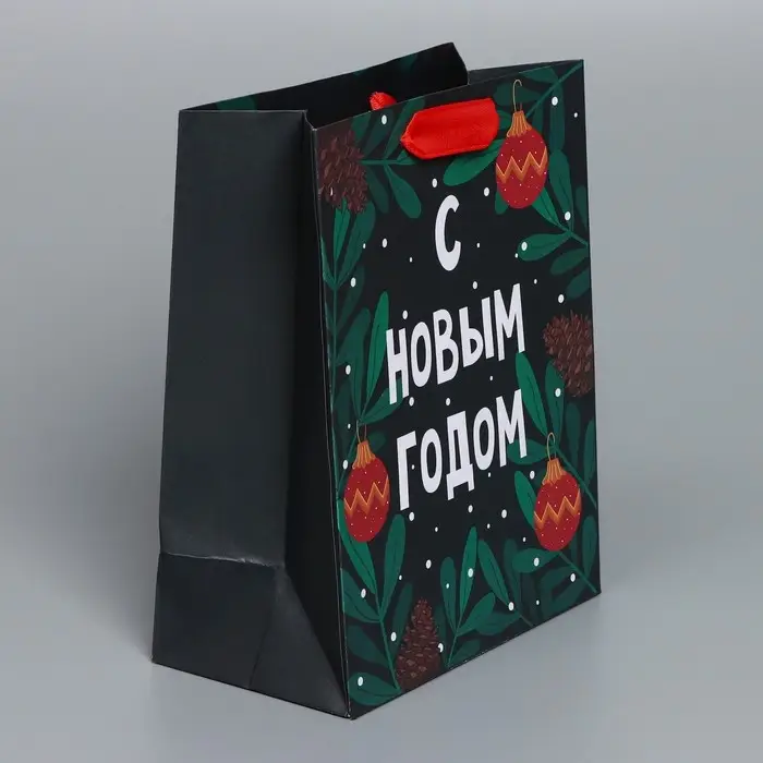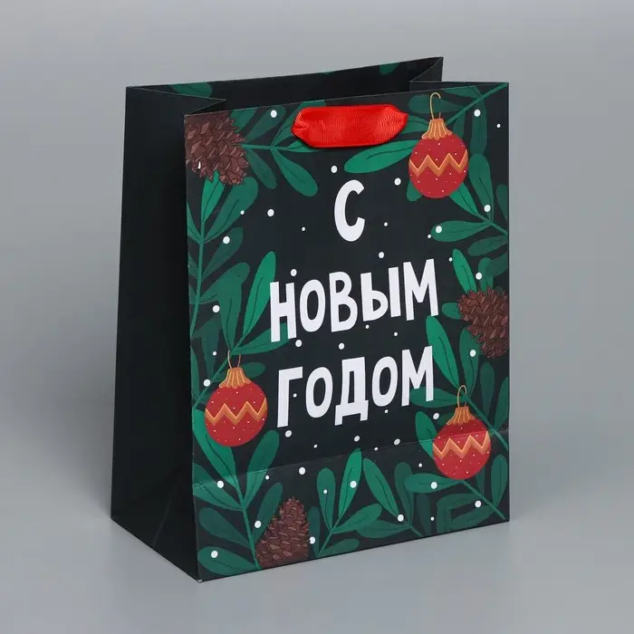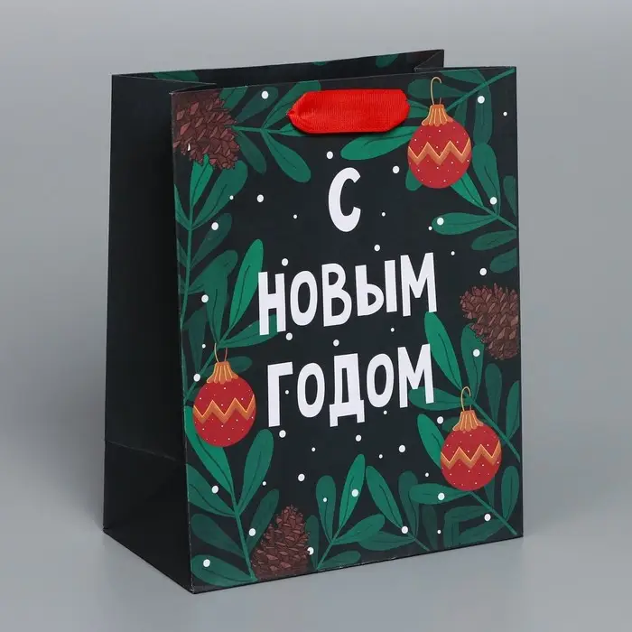 Пакет подарочный новогодний крафтовый «Green», MS 18 х 23 х 10 см