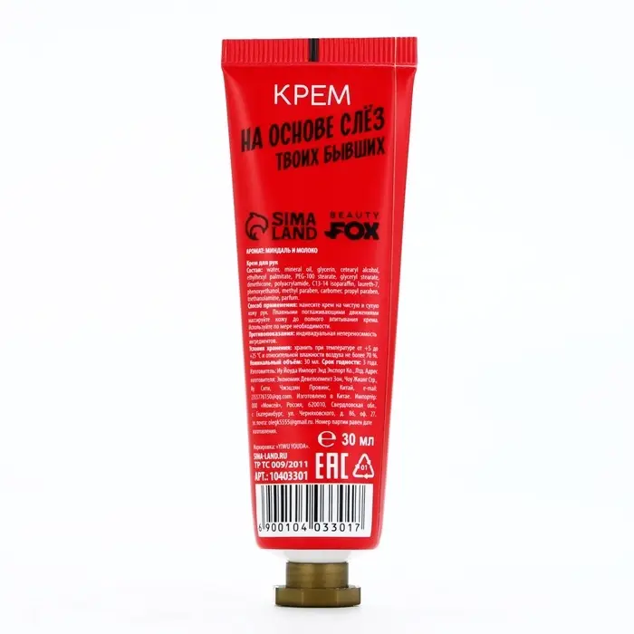 Крем для рук «Слезы бывших», 30 мл, аромат миндаля и молока, BEAUTY FOX