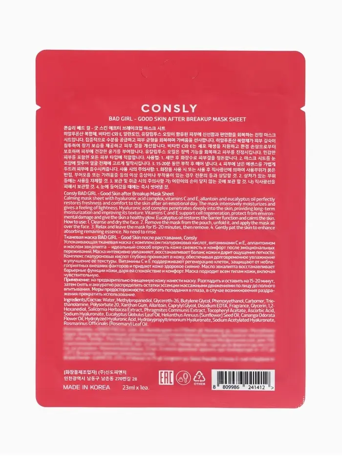Consly «После расставания» — это не просто тканевая маска, а маленький ритуал заботы о себе, который помогает коже успокоиться, восстановиться и снова выглядеть свежей и ухоженной.