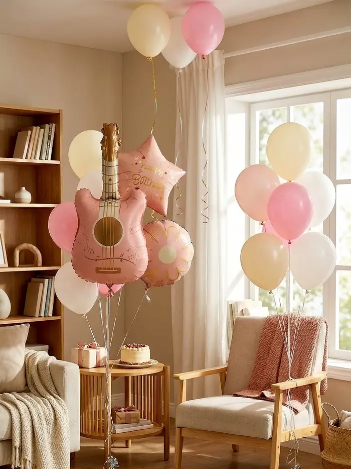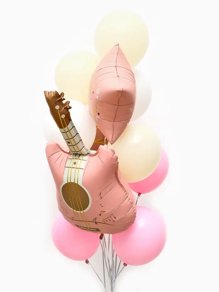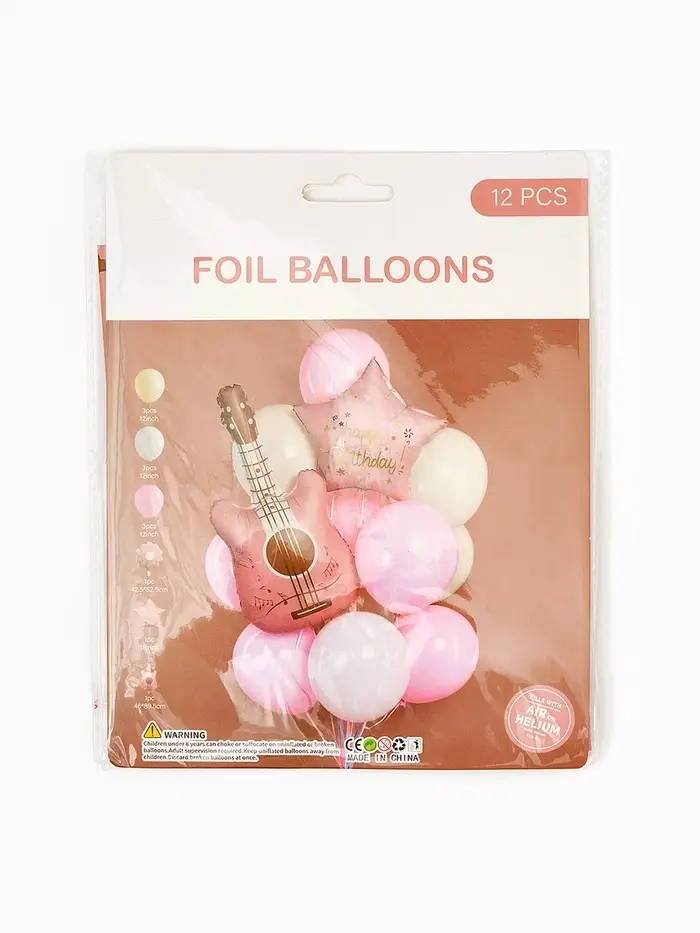 Воздушные шары "Розовая гитара" фольга, латекс, набор 12 штук