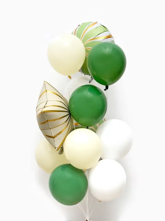 Воздушные шары "Зеленые грани" фольга, латекс, набор 12 штук