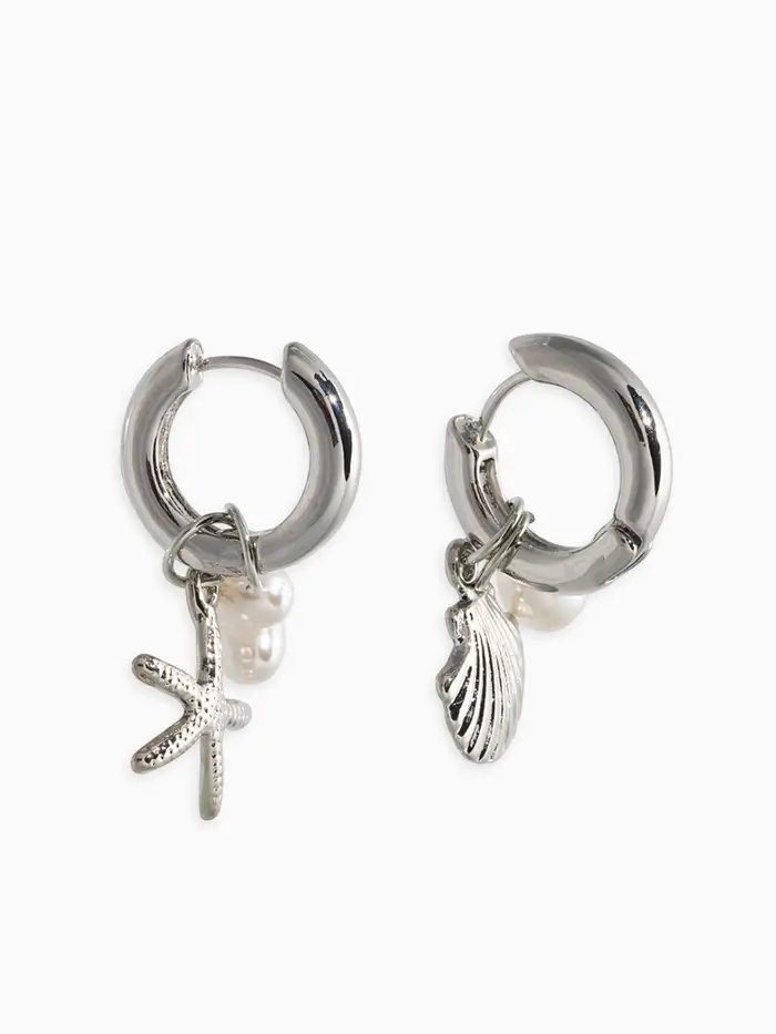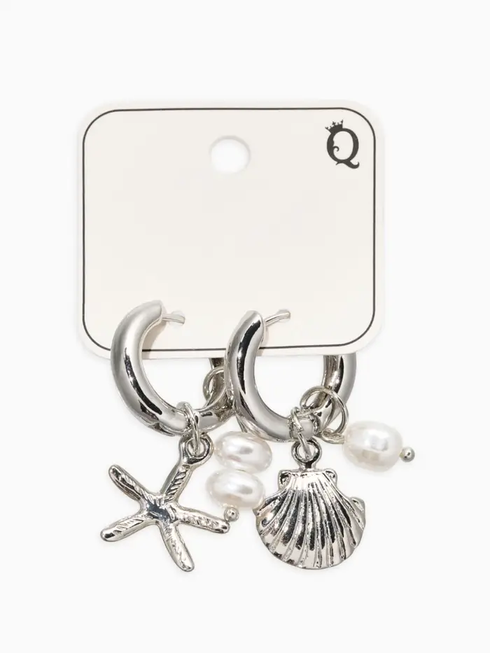 Серьги жемчуг "Ракушка со звездой", цвет белый в серебре