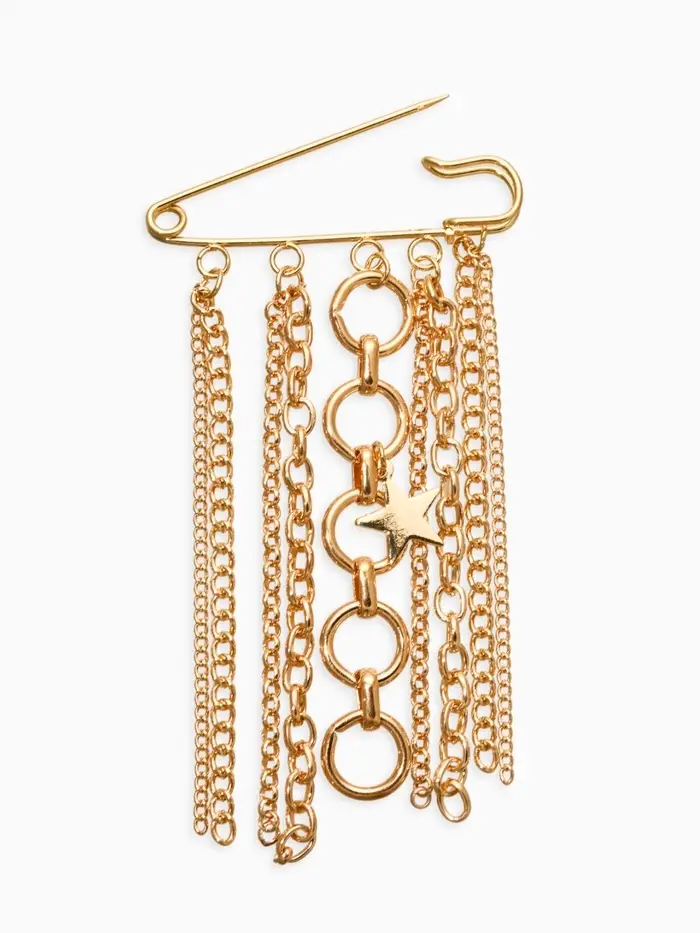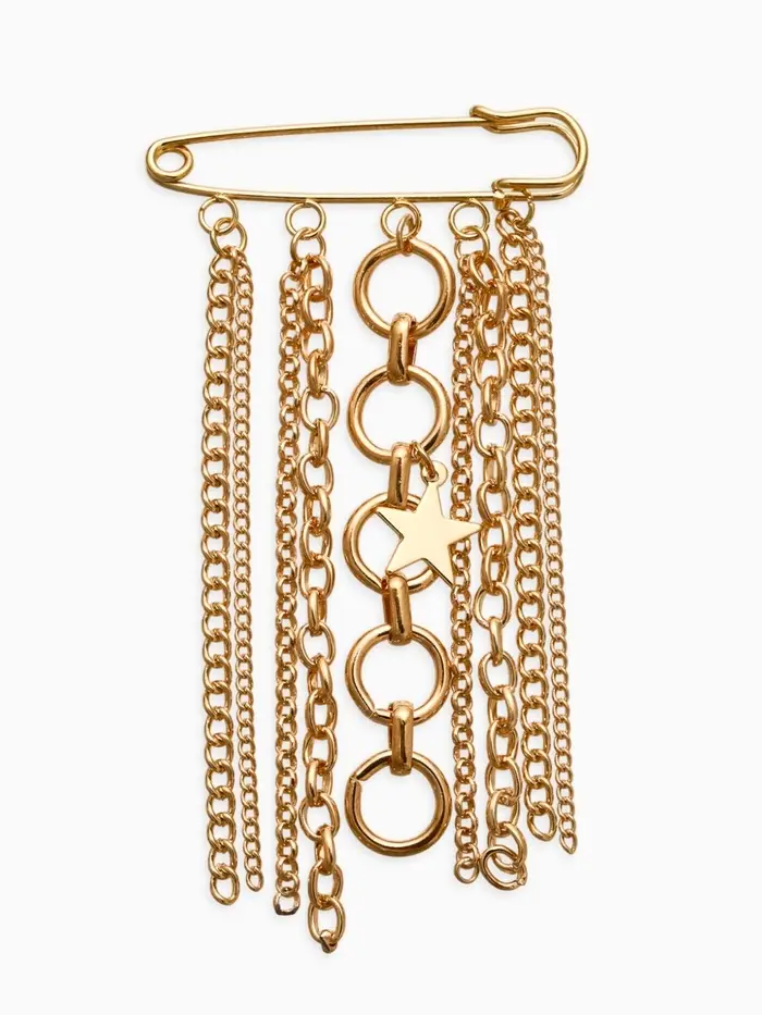 Булавка с подвесами "Звезды", цвет золото L=6см