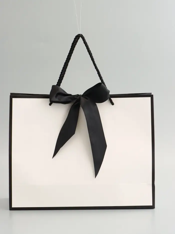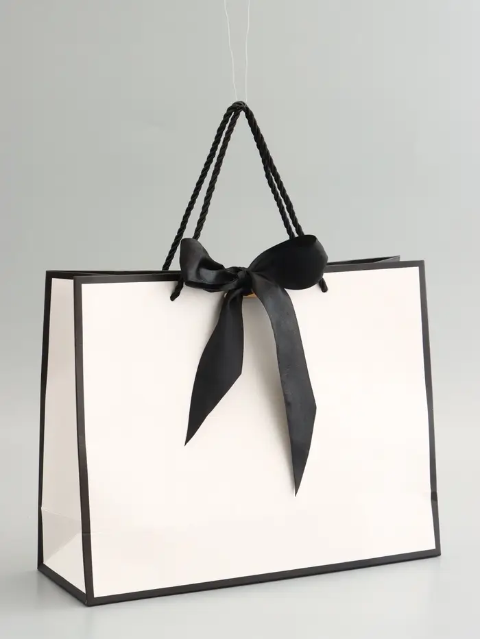 Пакет подарочный, белый, с бантом, 32 х 25 х 11 см