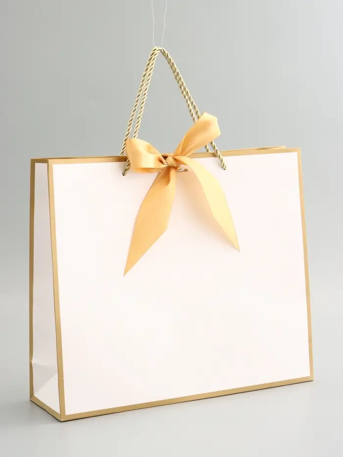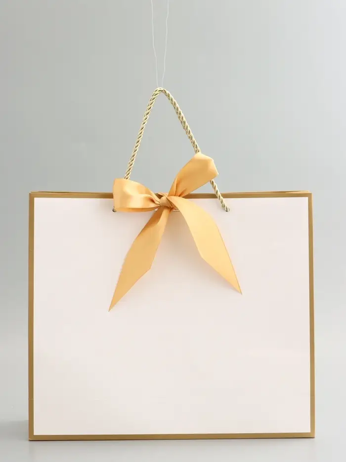 Пакет подарочный, белый, с бантом, 35 х 30 х 10 см