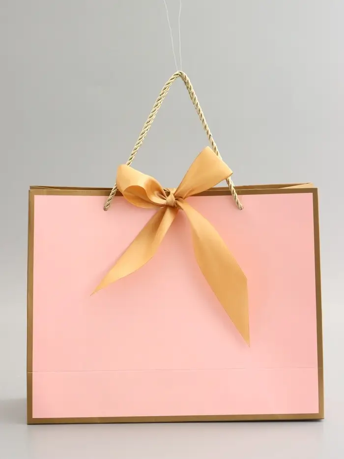 Пакет подарочный, розовый , с бантом, 32 х 25 х 11 см