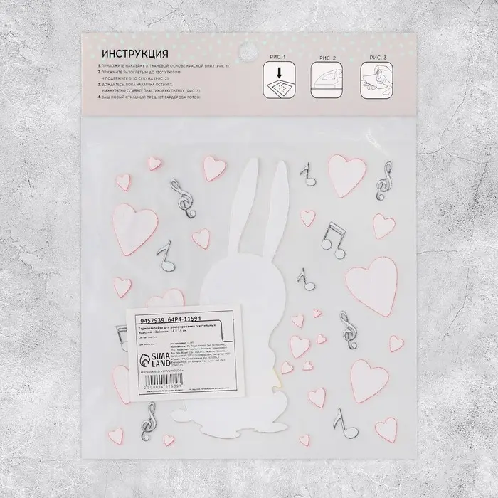 Термонаклейка для декорирования текстильных изделий «Зайчик», 14 х 14 см