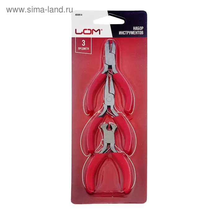 Набор инструментов ЛОМ, бокорезы, длинногубцы, клещи, обрезиненные рукоятки, 80 мм