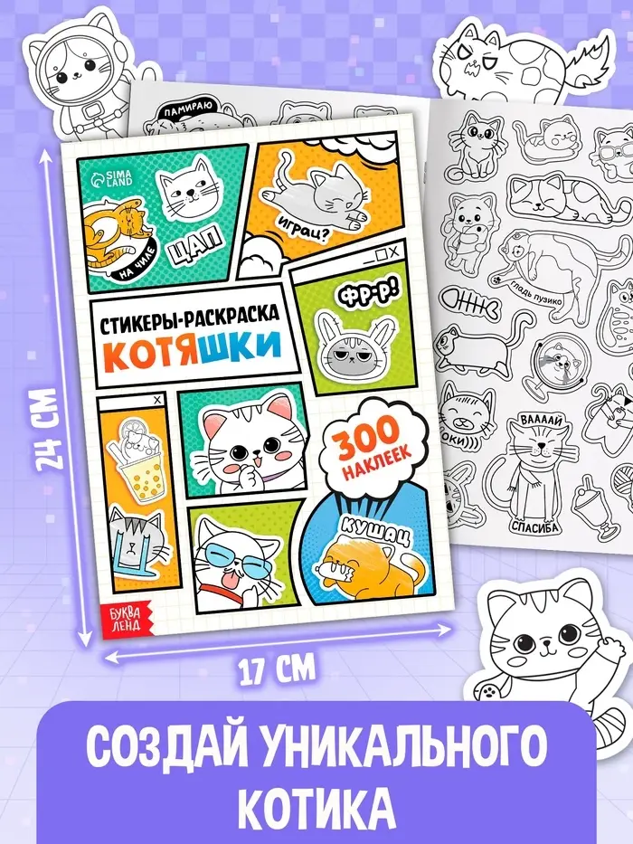 Книжное комплектное издание «Котомемы. 1500 стикеров», 5 книг, ролик, 3д стикеры