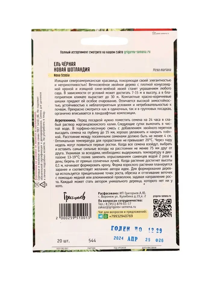 Семена цветов Ель Новая Шотландия чёрная (Nova Scotia) 20 шт. / НОВИНКА 12.29 г.