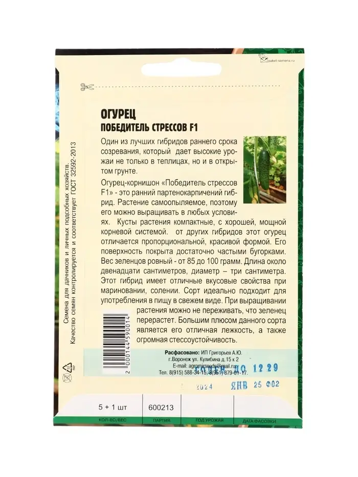 Семена Огурец Победитель Стрессов F1 5+1 шт. 12.29 г.