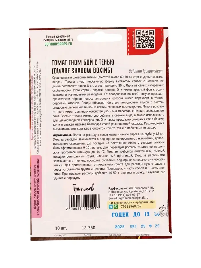 Семена Томат Гном Бой с Тенью (Dwarf Shadow Boxing) 10шт. 12.29 г.