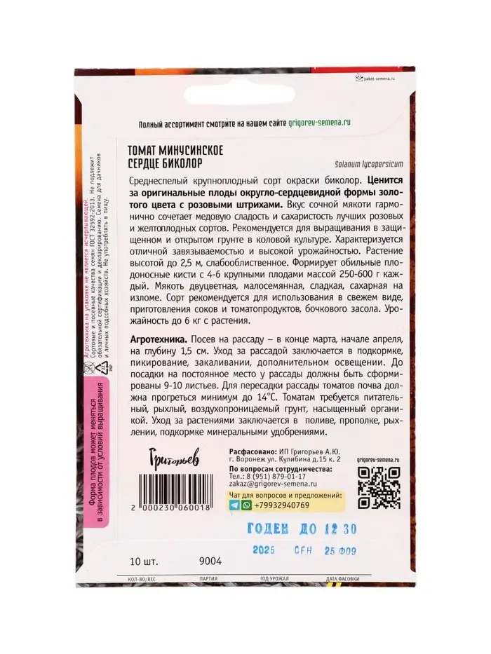 Семена Томат Минусинское Сердце Биколор 10шт. 12.29 г.