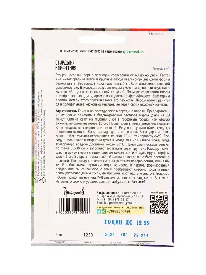 Семена Огурдыня Конфетная 3 шт. 12.29 г.