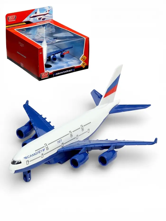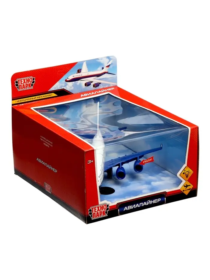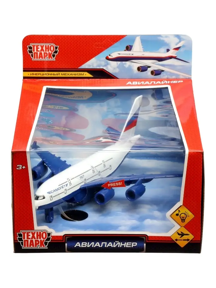 Модель металл. "Авиалайнер", 22 см, свет-звук, инерц., подв. детали 1706C158-R (36)